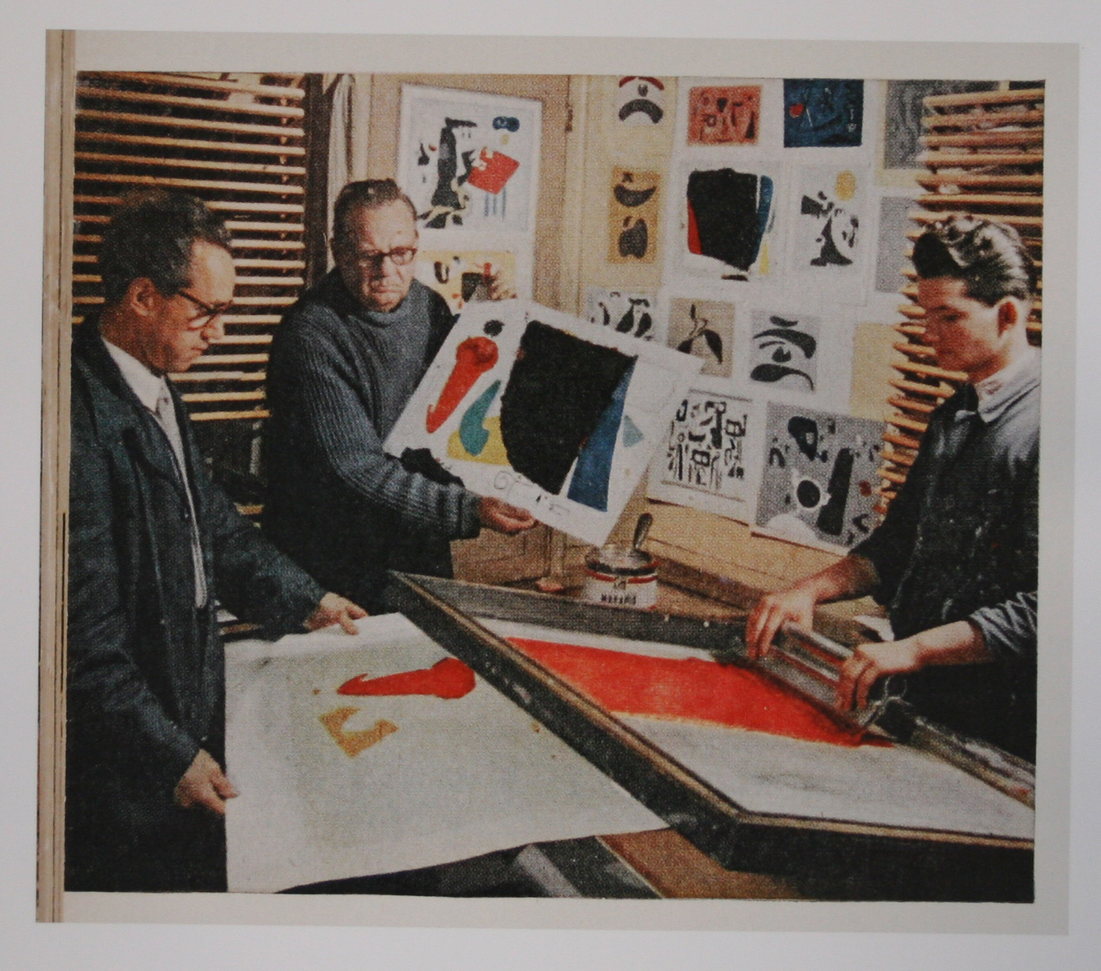 Die Tech­nik des Sei­den­sieb­drucks wur­de nach dem Zwei­ten Welt­krieg auch in Deutsch­land bekannt durch Aus­stel­lun­gen der Ame­ri­ka-Häu­ser, die 1945/46 mit dem Ziel gegrün­det wor­den waren, den Aus­tausch zwi­schen Deut­schen und Ame­ri­ka­nern und das gegen­sei­ti­ge Inter­es­se für die jewei­li­ge Kul­tur zu för­dern. Wil­li Bau­meis­ter sah eine sol­che Aus­stel­lung erst­mals 1948 und erkann­te, dass sich man­che sei­ner künst­le­ri­schen Absich­ten mit Hil­fe des Sieb­drucks opti­mal ver­wirk­li­chen lie­ßen, ins­be­son­de­re der inten­si­ve Ein­satz von Far­be und der Druck ohne manu­el­le Spu­ren. Auch konn­ten meh­re­re Far­ben – sogar Weiß und Schwarz – deckend über­ein­an­der gedruckt wer­den.