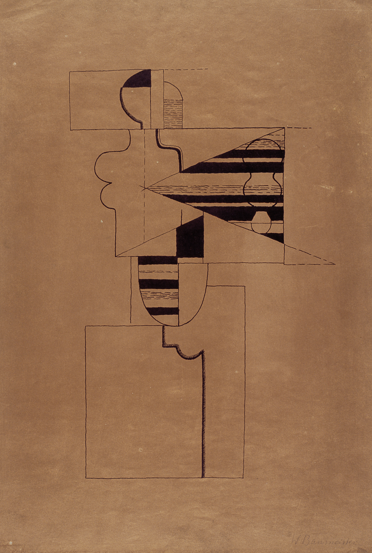 Inter­es­san­ter­wei­se arbei­te­te Bau­meis­ter in sei­nen Litho­gra­fien die­ser Zeit eben­falls mit Scha­blo­nen. Sei­ne Lust am Expe­ri­men­tie­ren ist über alle Medi­en und Tech­ni­ken hin­weg zu beob­ach­ten.