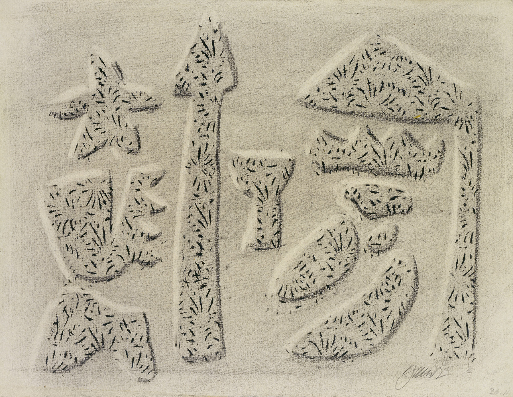 Diese Absicht betonte er durch den Einsatz der neuen „Kammzug“-Technik, mit deren Hilfe er einzelnen Bildbestandteilen eine lebhafte, sich im Licht brechende Oberfläche verlieh. Diese Technik, mit der er nun auch einzelnen Flächen Bewegungen und Richtungen zuwies, setzte er bis weit in die Fünfziger Jahre ein. In den Zeichnungen findet man sie noch häufiger in Gestalt der Durchreibe-Technik.