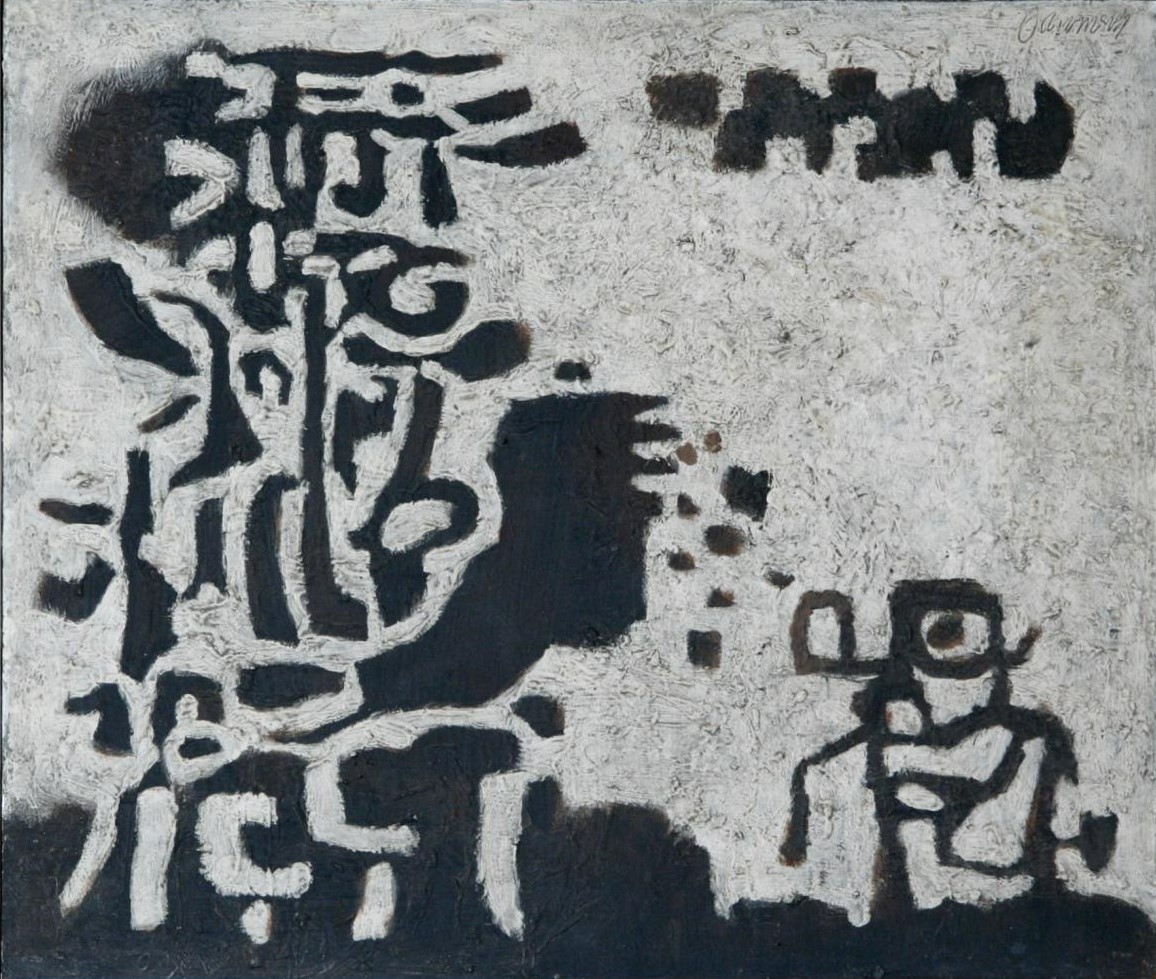 Oberfläche verschmutzt, wenige Ausbrüche im Bild, einige zu überarbeitende Retuschen, Nagelung ringsum gelockert (auch am Rahmen).