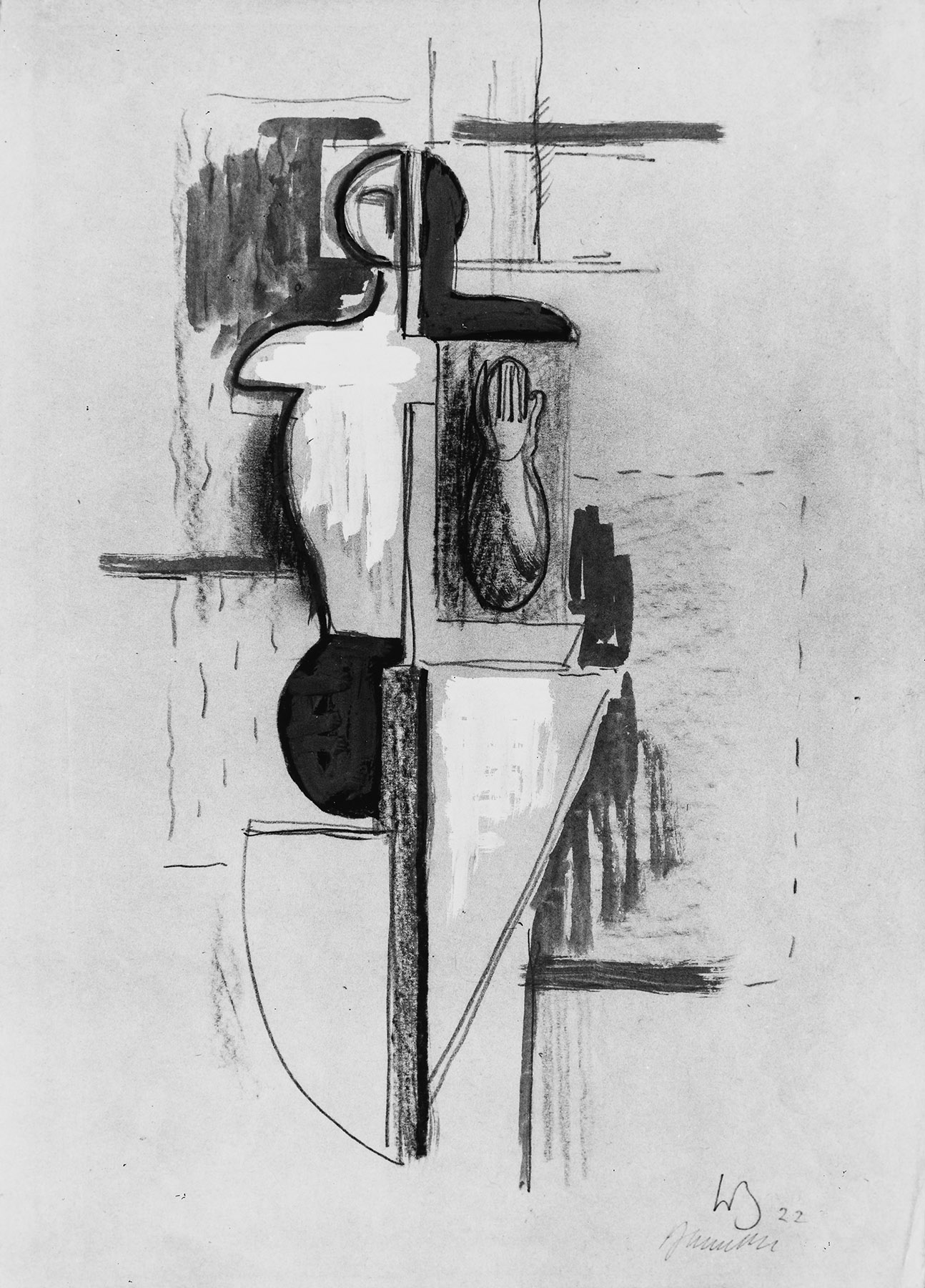 Ob es sich bei diesem malerischen Blatt um eine Skizze, einen unfertigen Zustand oder um eine vollgültige Arbeit handelt, muß offen bleiben. Als ursprünglich ist die Signierung mit den ligierten Initialen anzusehen. Erst später sind die ausgeschriebene Signatur und die Datierung nachgetragen worden - vielleicht aus Anlaß der Ausstellung einer noch von B. ausgewählten Gruppe in der Galerie Ralfs in Braunschweig 1953.