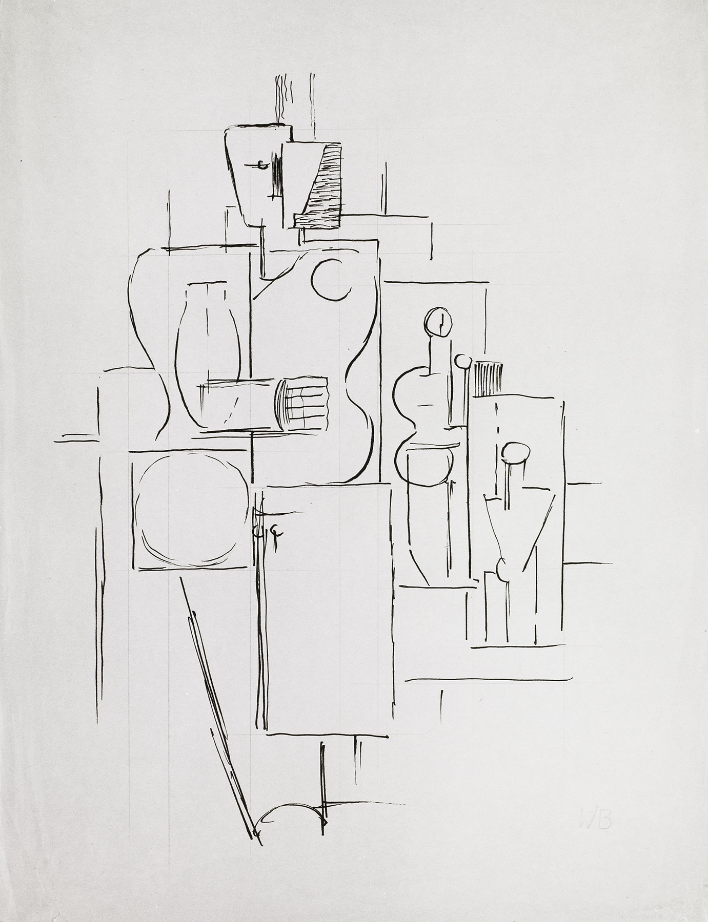Feder in Tusche, über Quadrierung mit Lineal in Bleistift in unregelmäßigen Abständen zur Festlegung der Maßverhältnisse, auf dünnem, bräunlichem, auf der Vorderseite geglättetem Packpapier