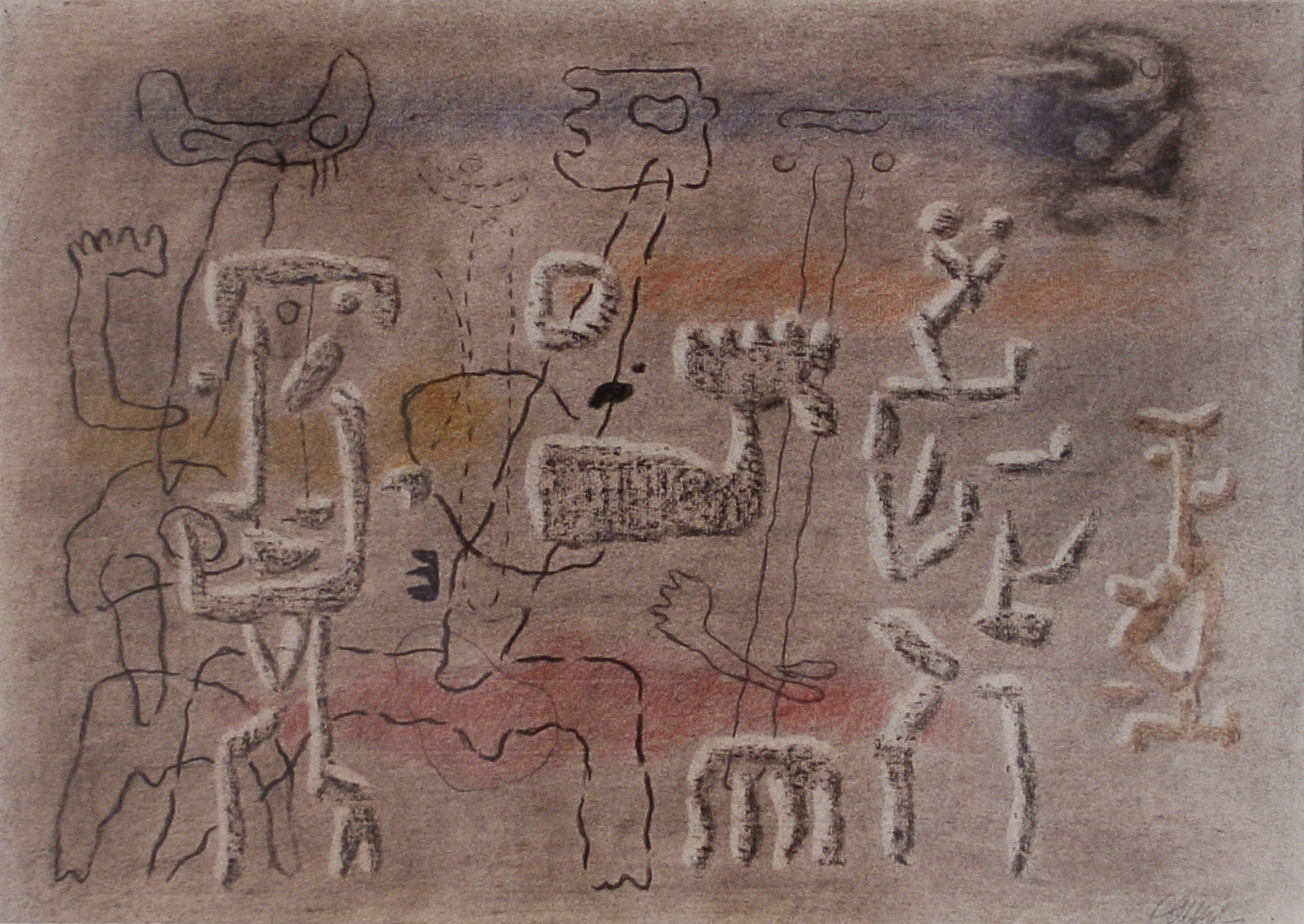 Kohle, gewischt, radiert, Ölkreide in Schwarz, Farbstifte, fixiert, auf rosafarbigem Ingres-Bütten