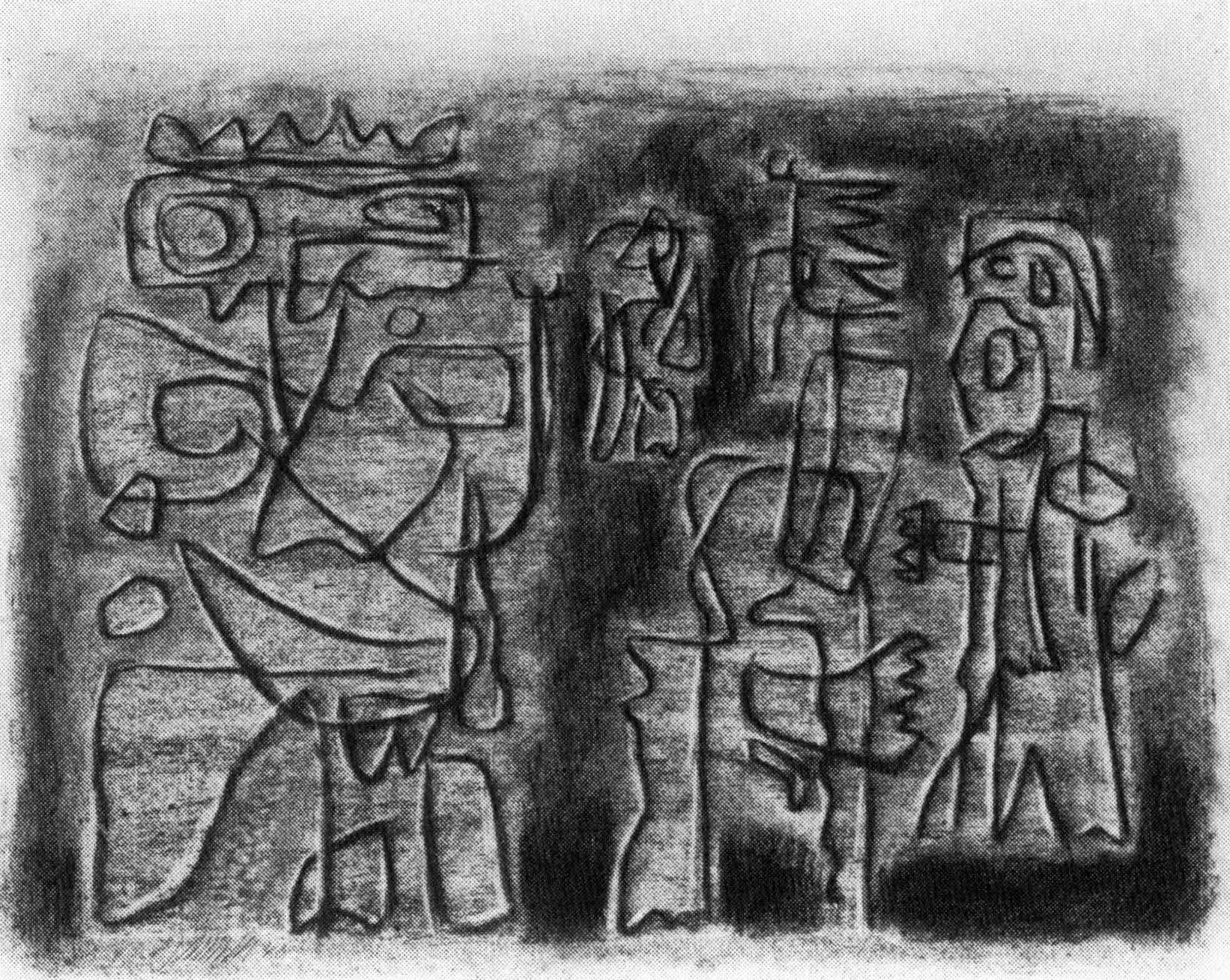 Kreide, Kohle, gewischt, radiert, auf elfenbeinfarbiqem Bütten