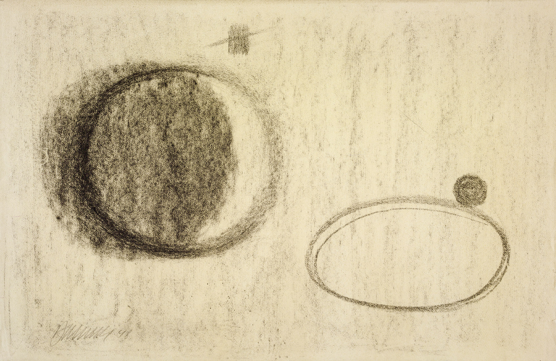 Kohle, gewischt, fixiert, auf hellgelbem Ingres-Bütten mit Wz. l. o.: CANSON & MO... und r. u.: INGRES