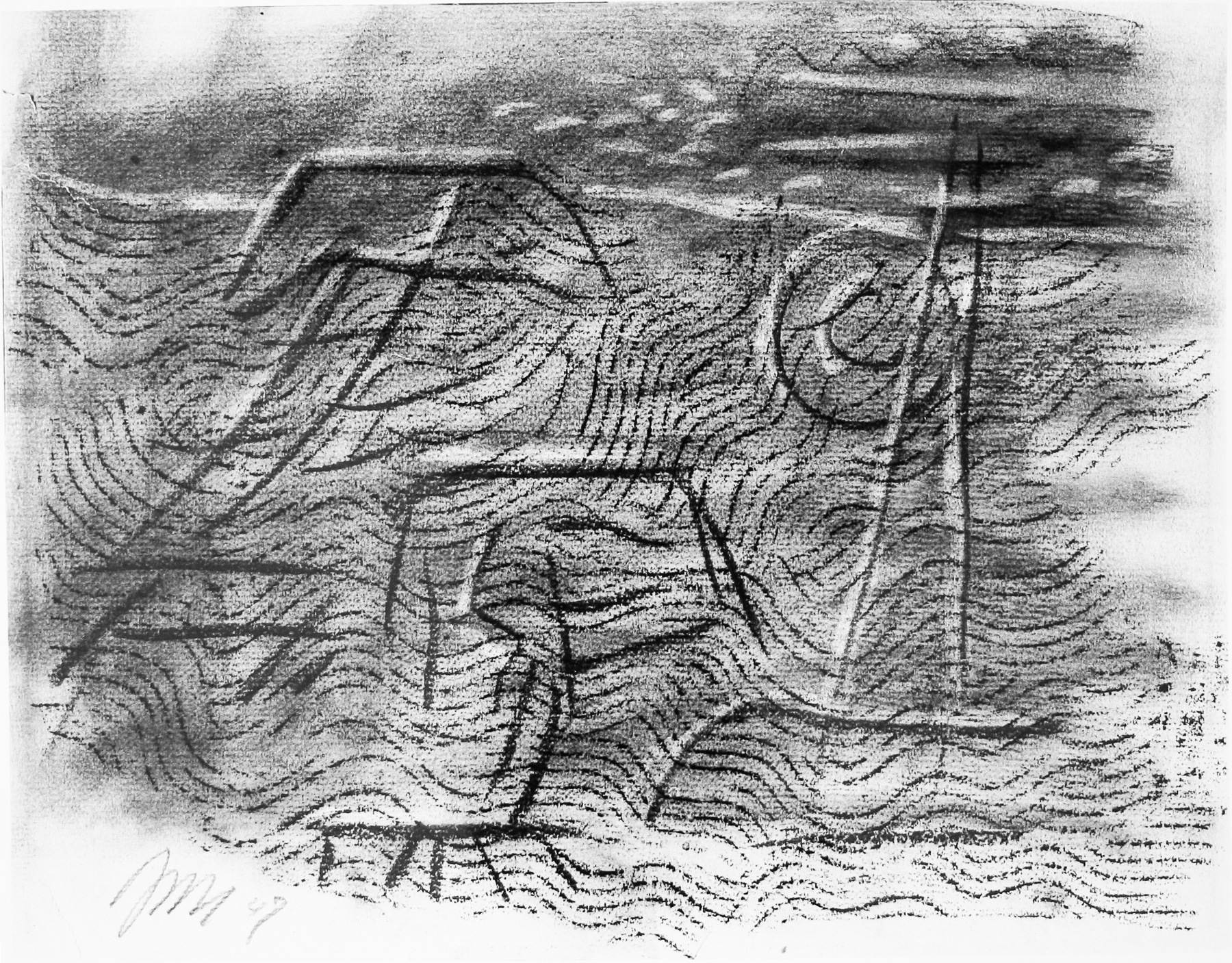Kohle, gewischt, radiert, Kreide, auf beigefarbigem Bütten mit Wz.: MONTGOLFIER FRANCE