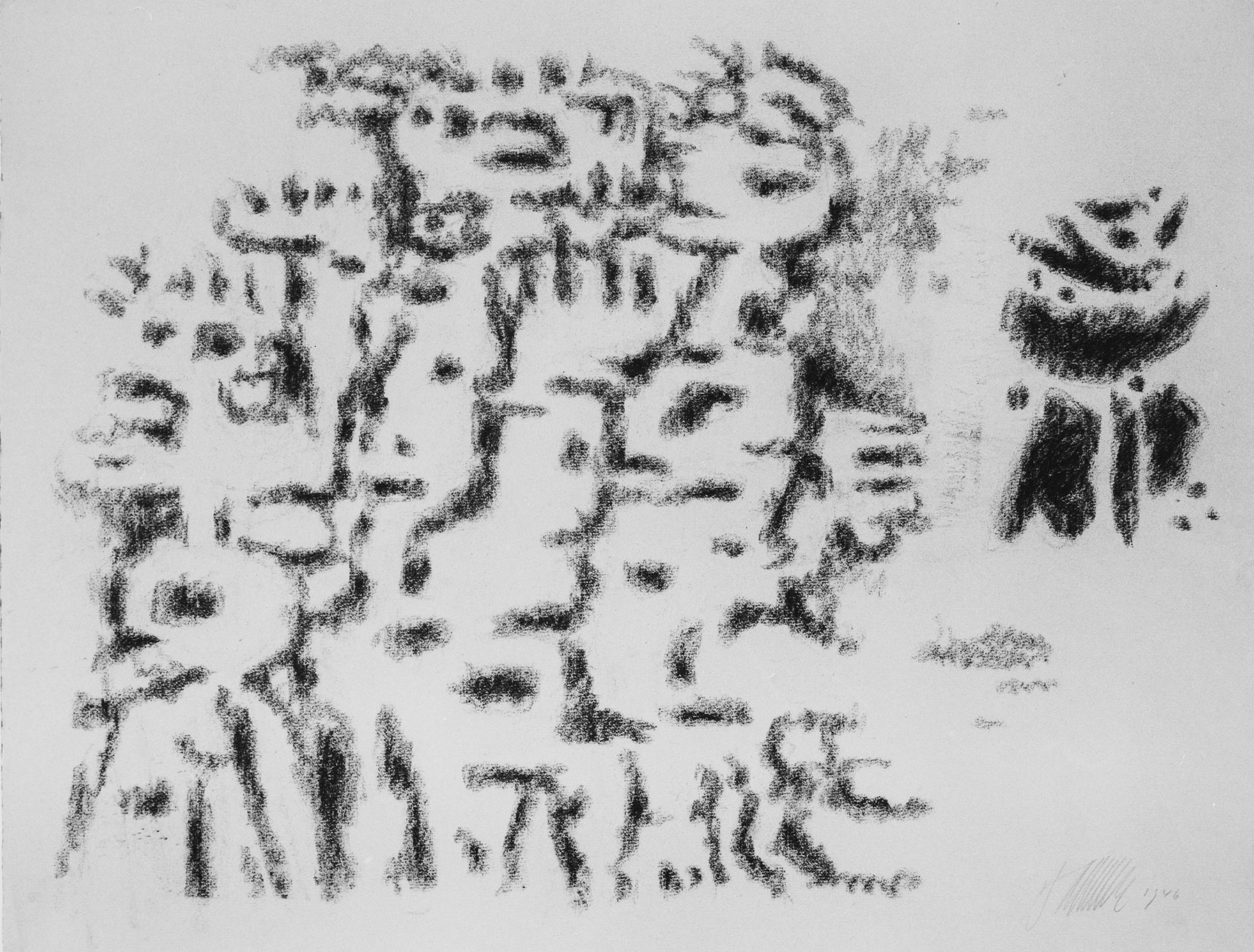 Kohle, fixiert, auf gelblichem Ingres-Bütten mit Wz. u.: CANSON & MONTGOLFIER FRANCE, l. o.: INGRES und r. o.: Kartusche