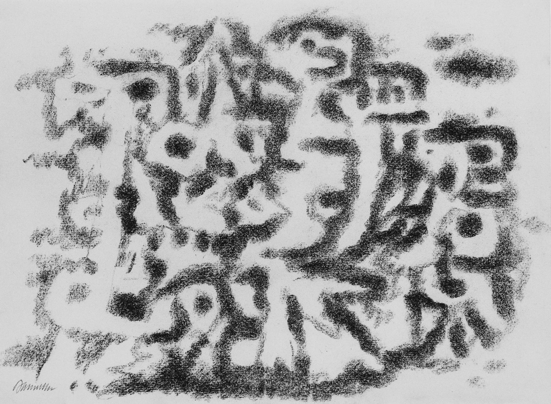 Kohle, fixiert, auf chamoisfarbigem, am Rand o. perforiertem Ingres-Bütten