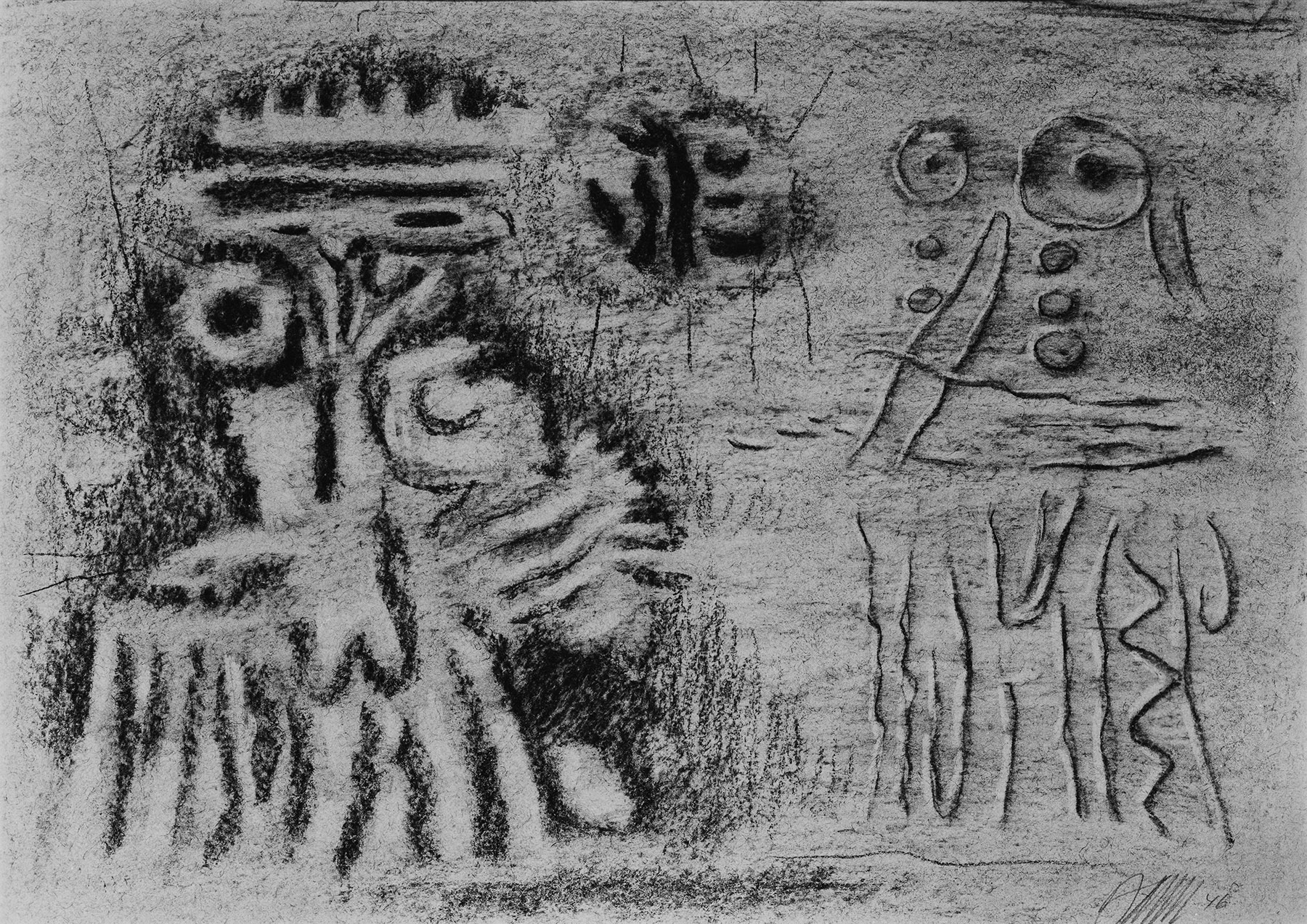 Kohle, gewischt, radiert, fixiert, auf rotbraunem, am Rand o. und u. gerissenem Maschinen-Bütten (Vorsatzpapier) mit Wz. Mitte: Rosette
