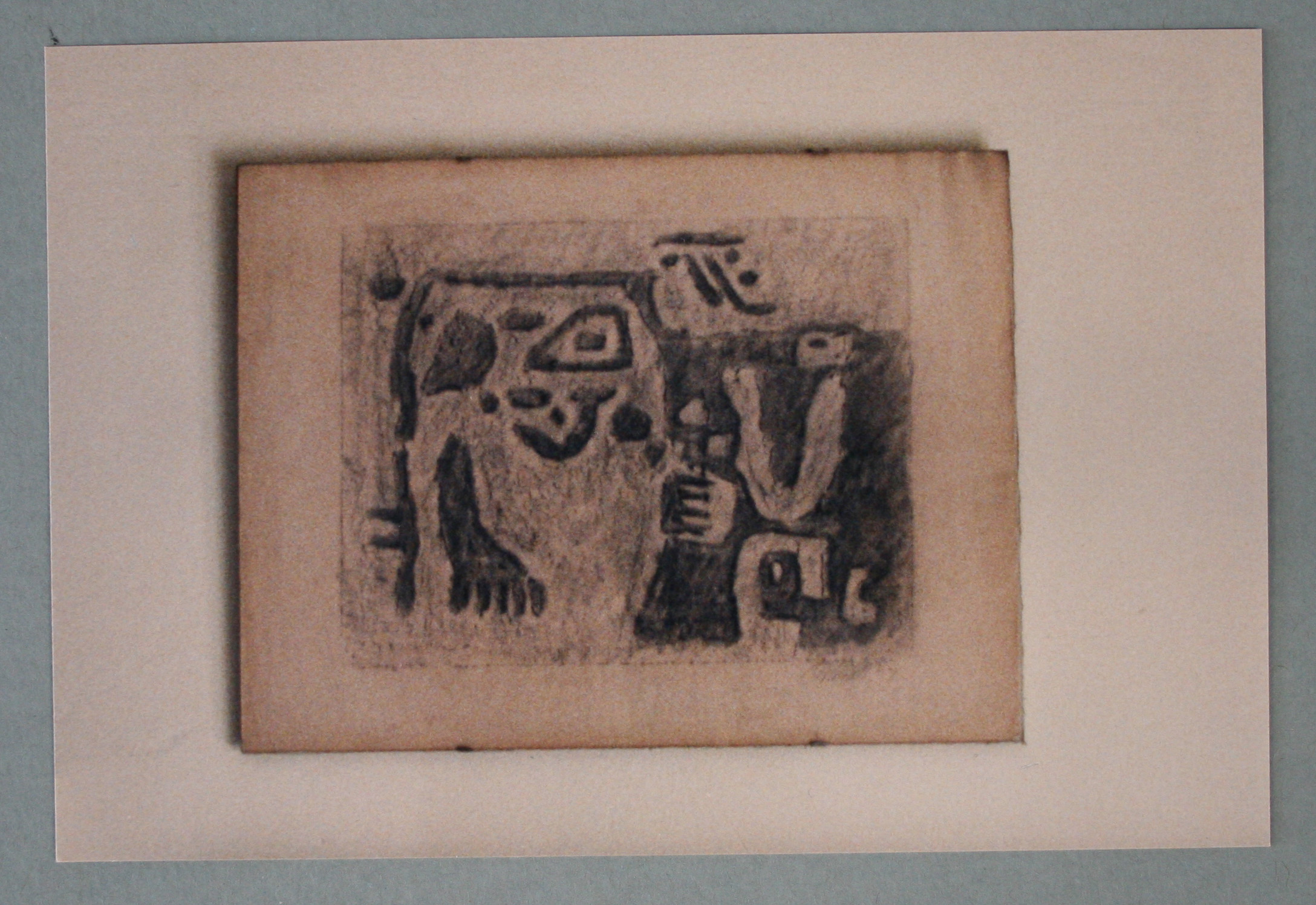 Kohle, gewischt, Kreide, auf rosafarbenem Bütten