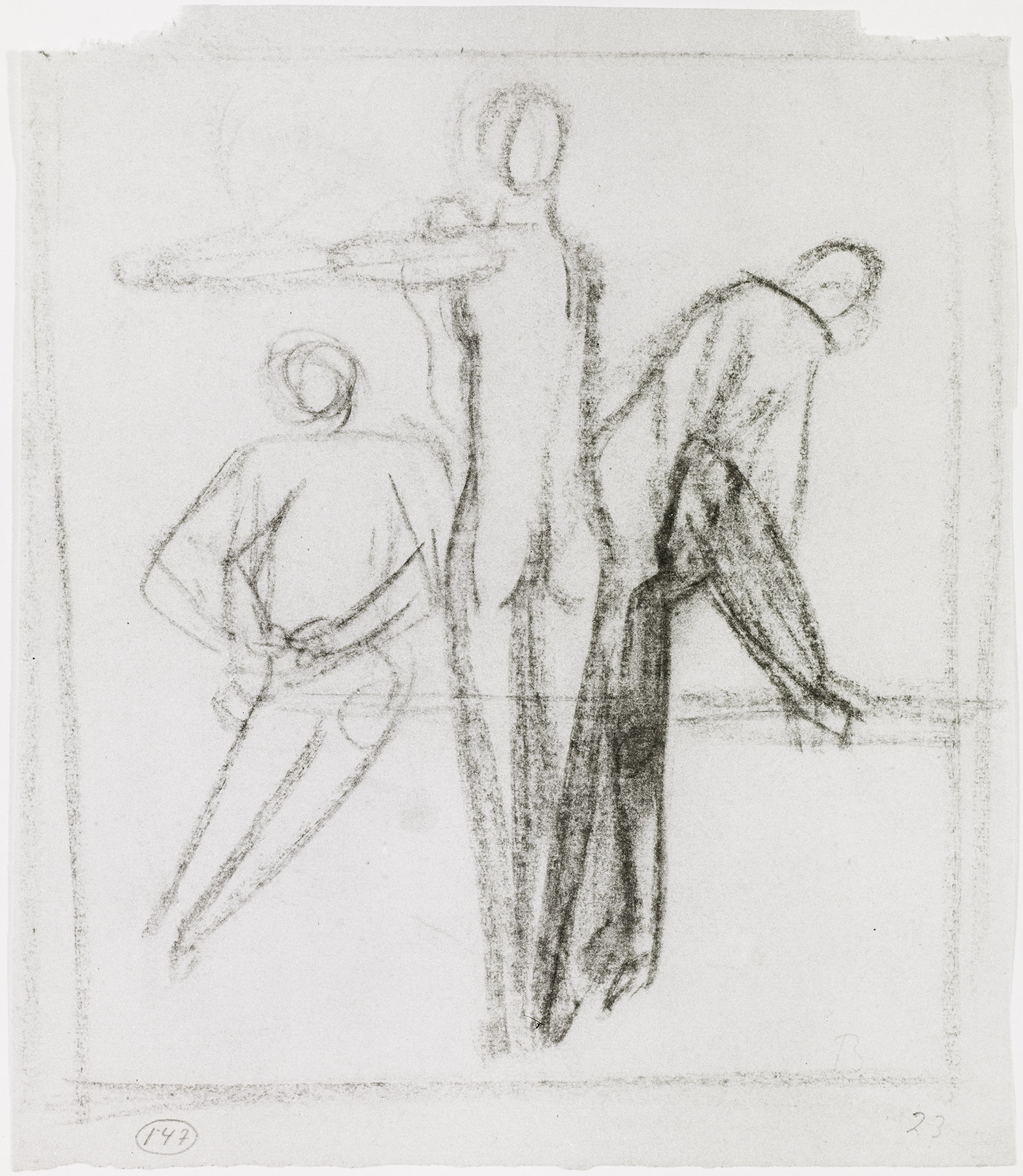 Wiederum nur eine Skizze, die Baumeister aber so wichtig war, daß er sie numerierte und datierte. Stilistisch gehört diese Zeichnung eher in die Zeit um 1912ff. Der abweichende Duktus von Signatur und Zahl läßt Zweifel an der Authentizität der Bezeichnung zu.