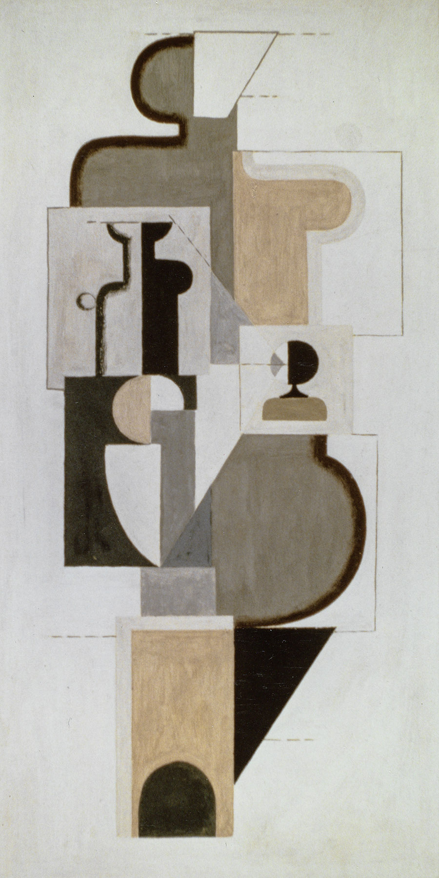 Deckfarbe in Grau, Rosa, Weiß, Schwarz, auf chamoisfarbigem Zeichenpapier, auf Karton aufgezogen