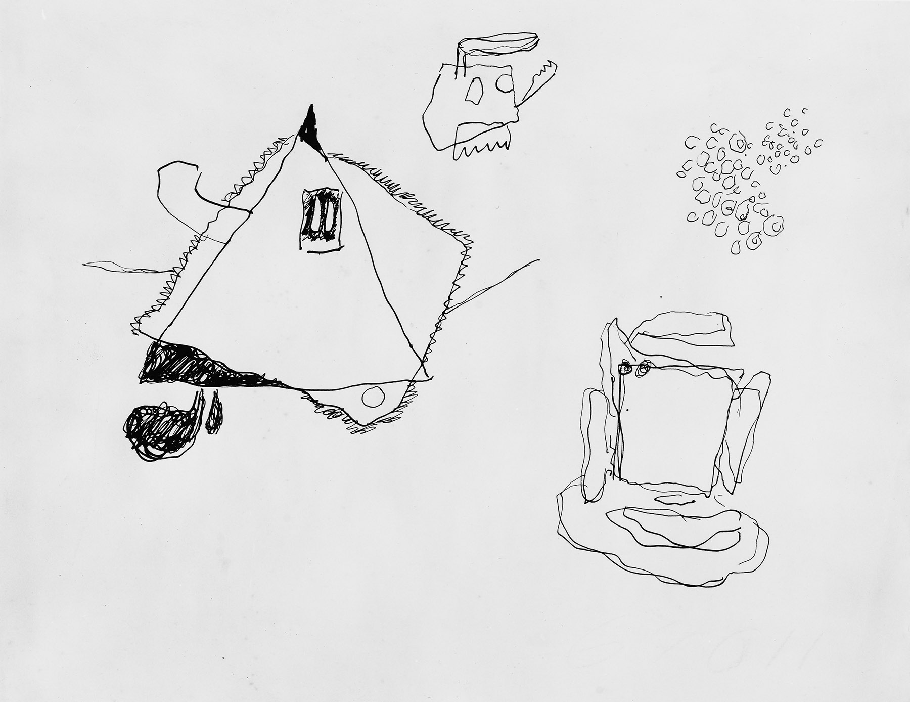 Skizze mit Motiven aus verschiedenen Gemälden. Vgl. G 1351 und 1581 von 1953, G 1414 und 1491 von 1954. (fkb)