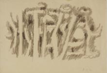 Demonstrationszeichnung nach Motiven der Werkserien "Urzeitgestalten" und "Giganten" aus den Jahren 1943-47.