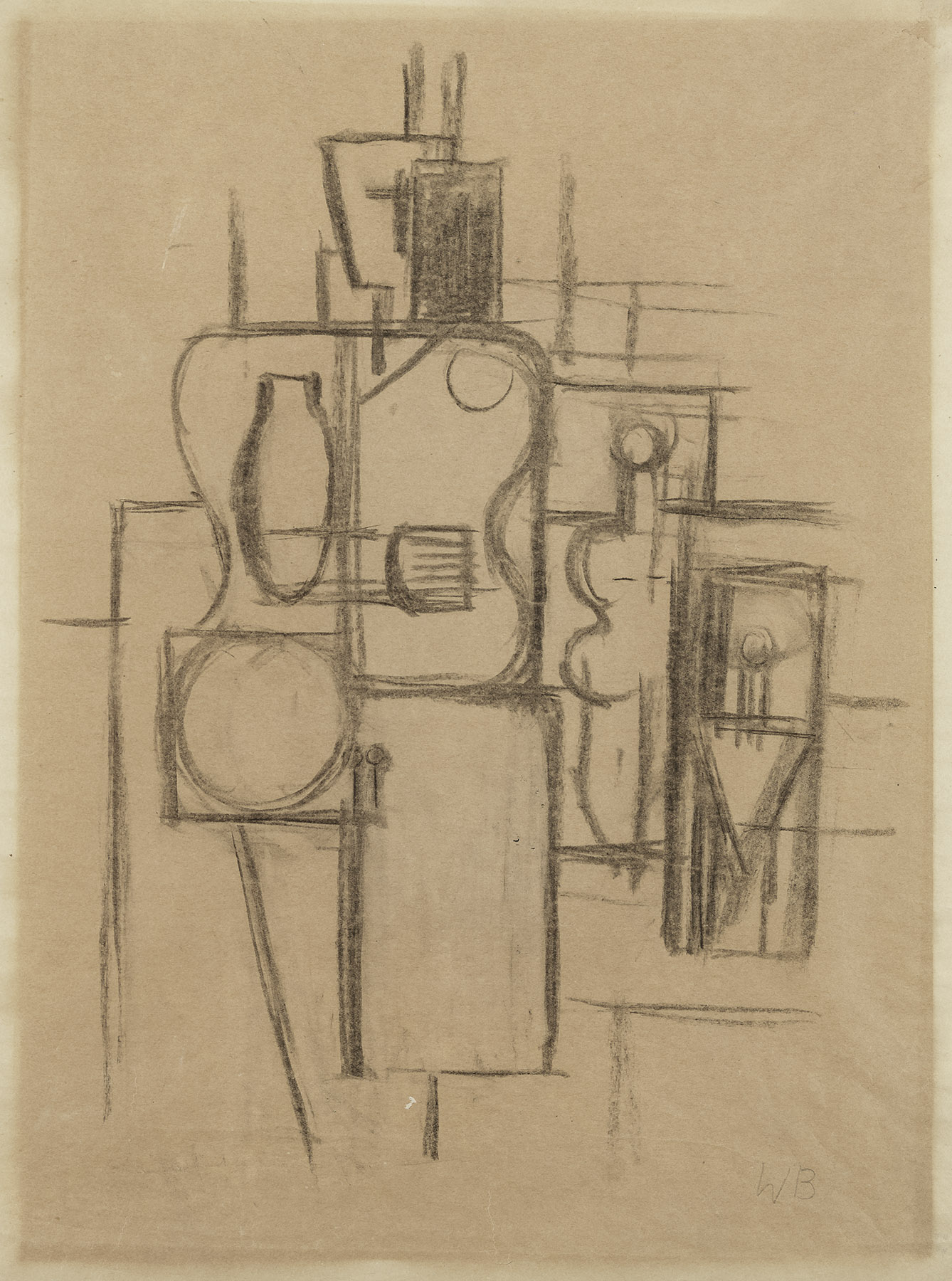 Kohle auf verbräuntem, dünnem Papier