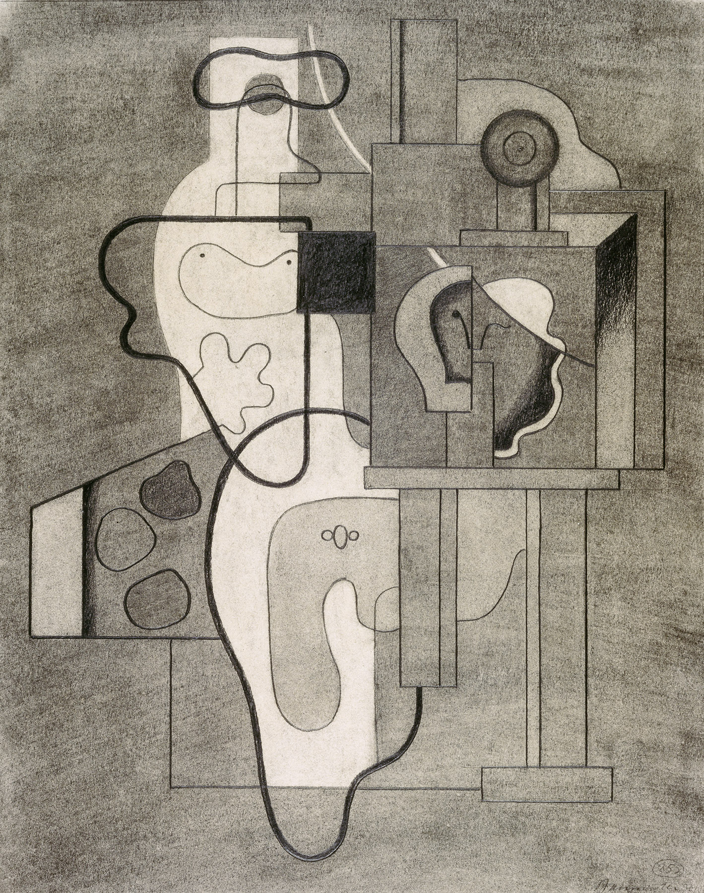 In diesem bedeutenden Blatt vereinigt sich auf überzeugende Weise das konstruktivistische Prinzip mit der seit 1930 entwickelten Linienfigur. Diese Verbindung bildet den Ursprung einer neuen Sichtweise Baumeisters.