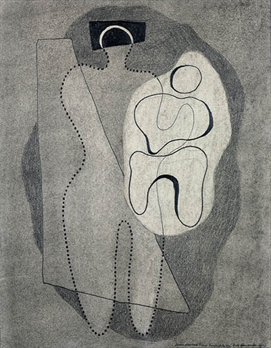 rechts unten: Herrn Herbert Read herzlichst Willi Baumeister 1933; Mitte unten (außerhalb der Einfassungslinie) mit Bleistift: take in a passepartout white
