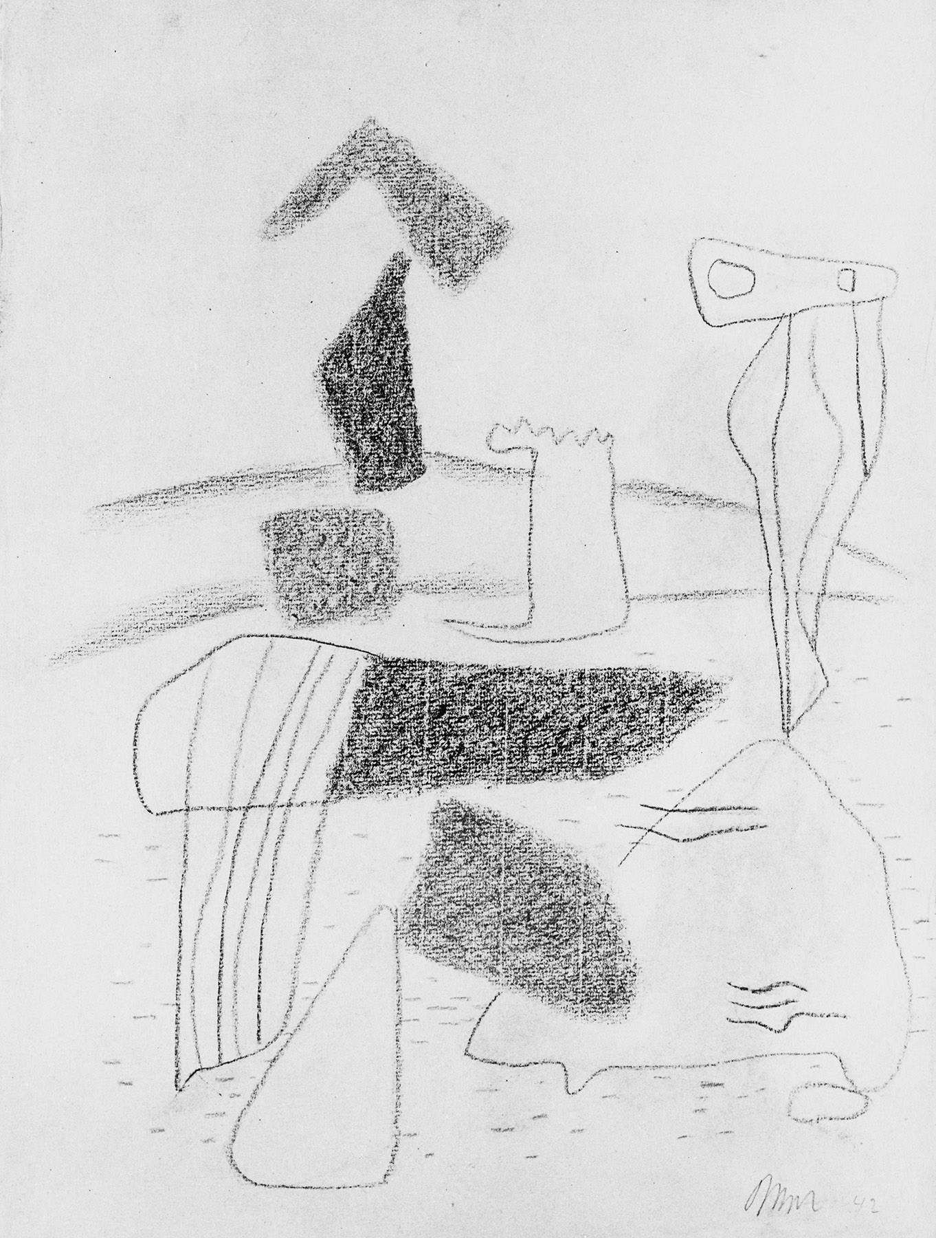 811 und 812: Die Blätter zeigen dialogisch angelegte, in eine Landschaft (vgl. Z 811) oder in einen Innenraum (vgl. Z 812) gestellte Szenen. Mit Z 812 greift B. erneut das Thema „Maler und Modell“ auf, wobei er die Gestalten nochmals - sich damit auf Gestaltungsprinzipien der 30er Jahre rückbesinnend - als Linienfiguren konzipiert.