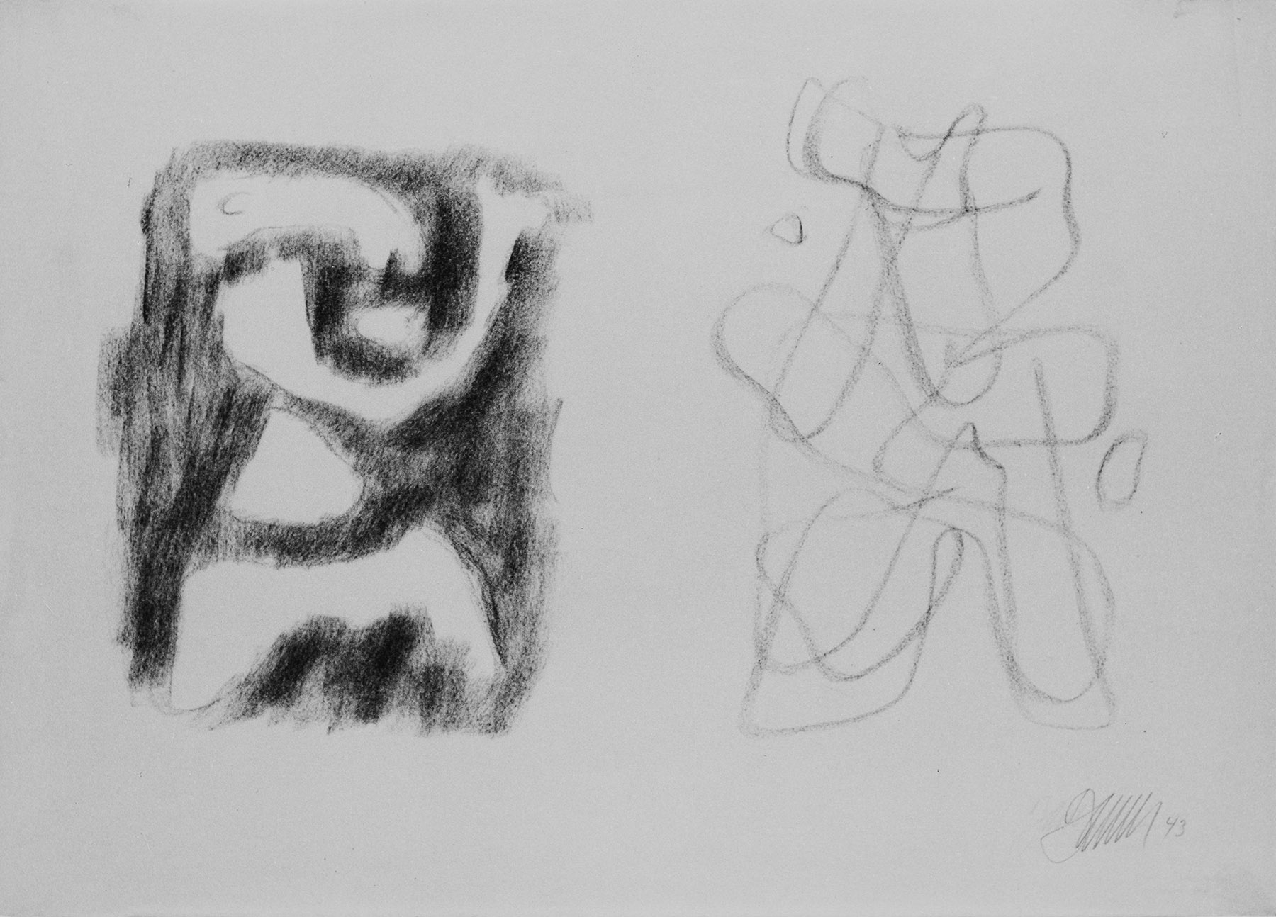 Kohle, z. T. gewischt, fixiert, auf chamoisfarbigem Zeichenpapier