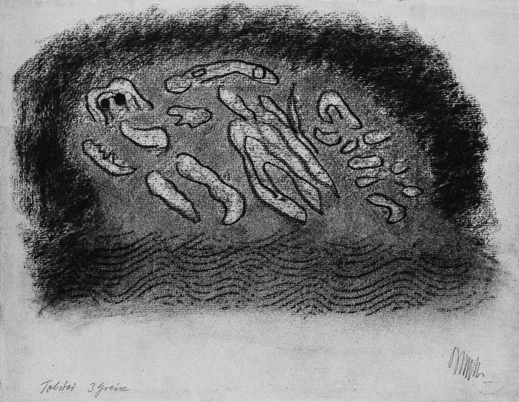 Kohle, gewischt, Ölkreide in Schwarz, z. T. durchgerieben, fixiert, auf beigefarbigem Ingres-Bütten