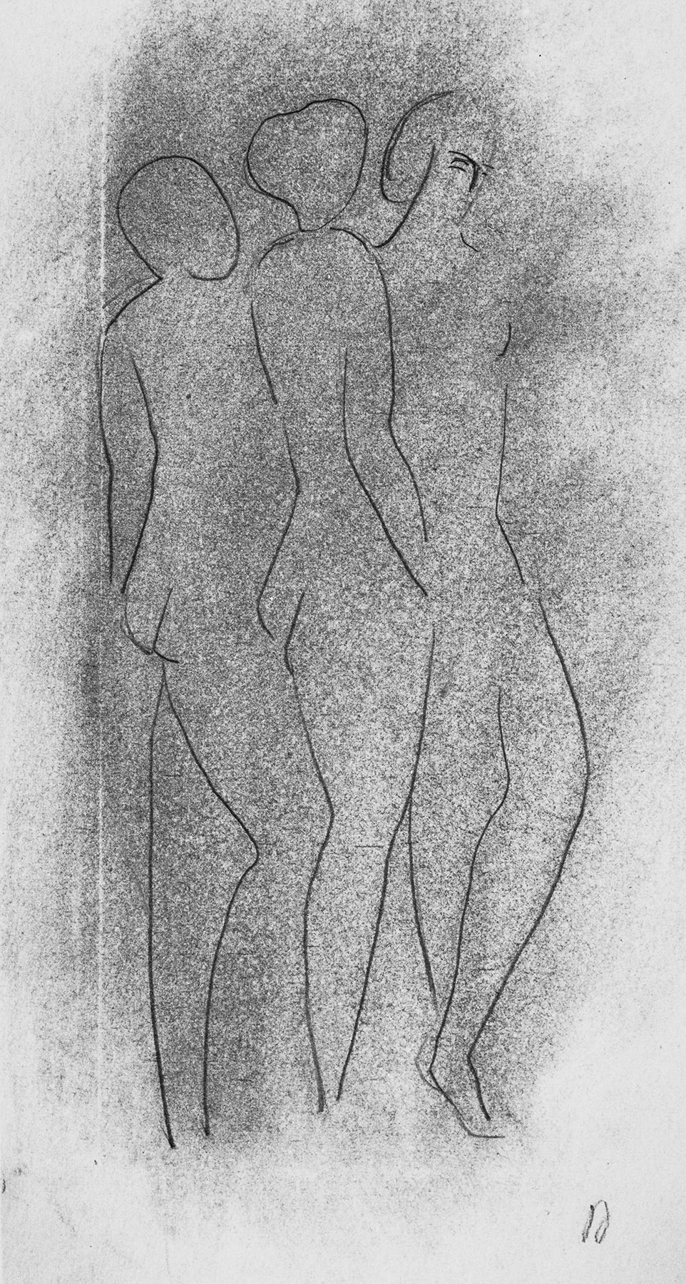 Kohle, gewischt, Bleistift, fixiert, auf chamoisfarbigem Zeichenkarton