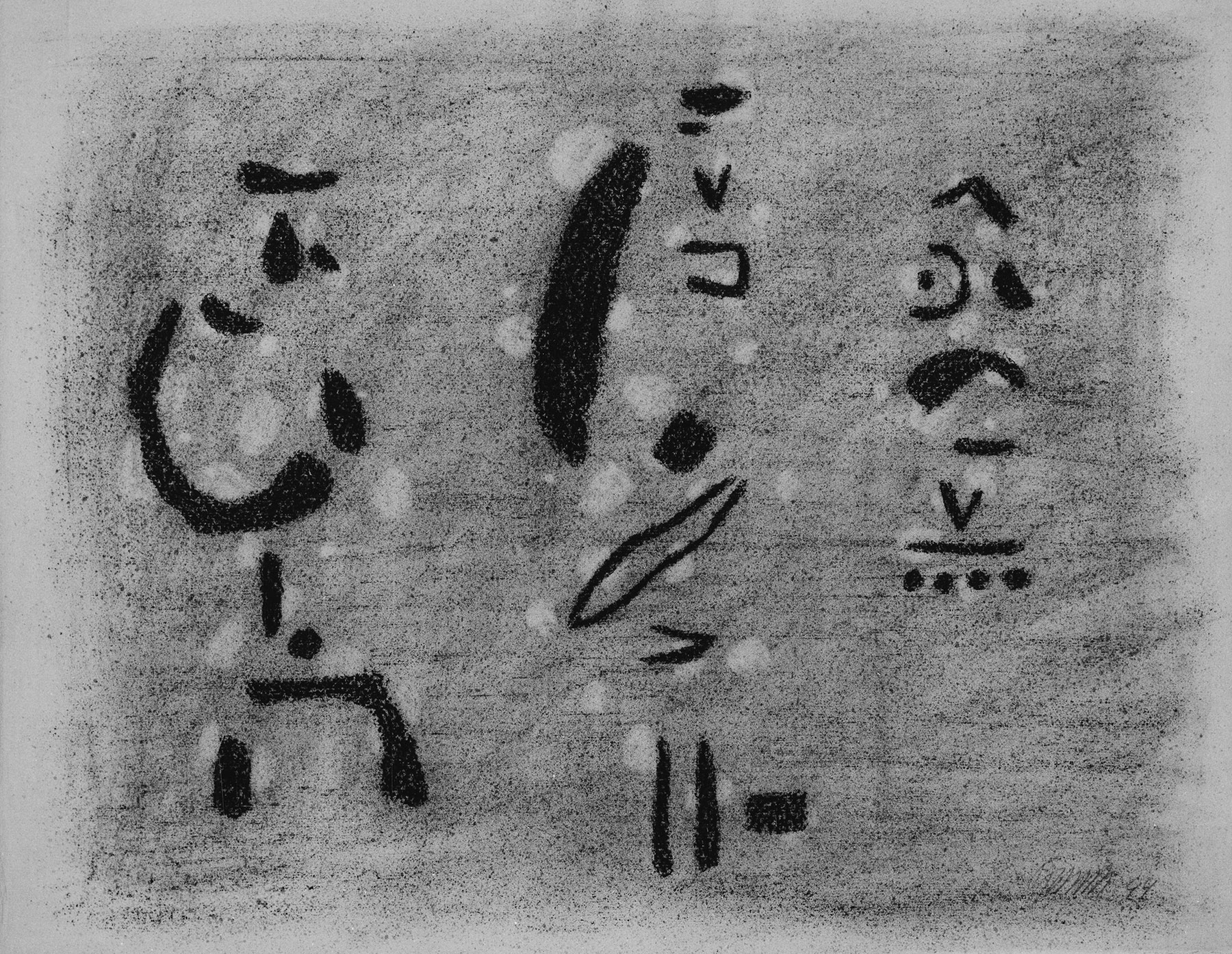 Vgl. das von B. 1946 datierte Gemälde G 776 mit dem originalen Titel auf der Rückseite „3 Ideogramme" (fkb)