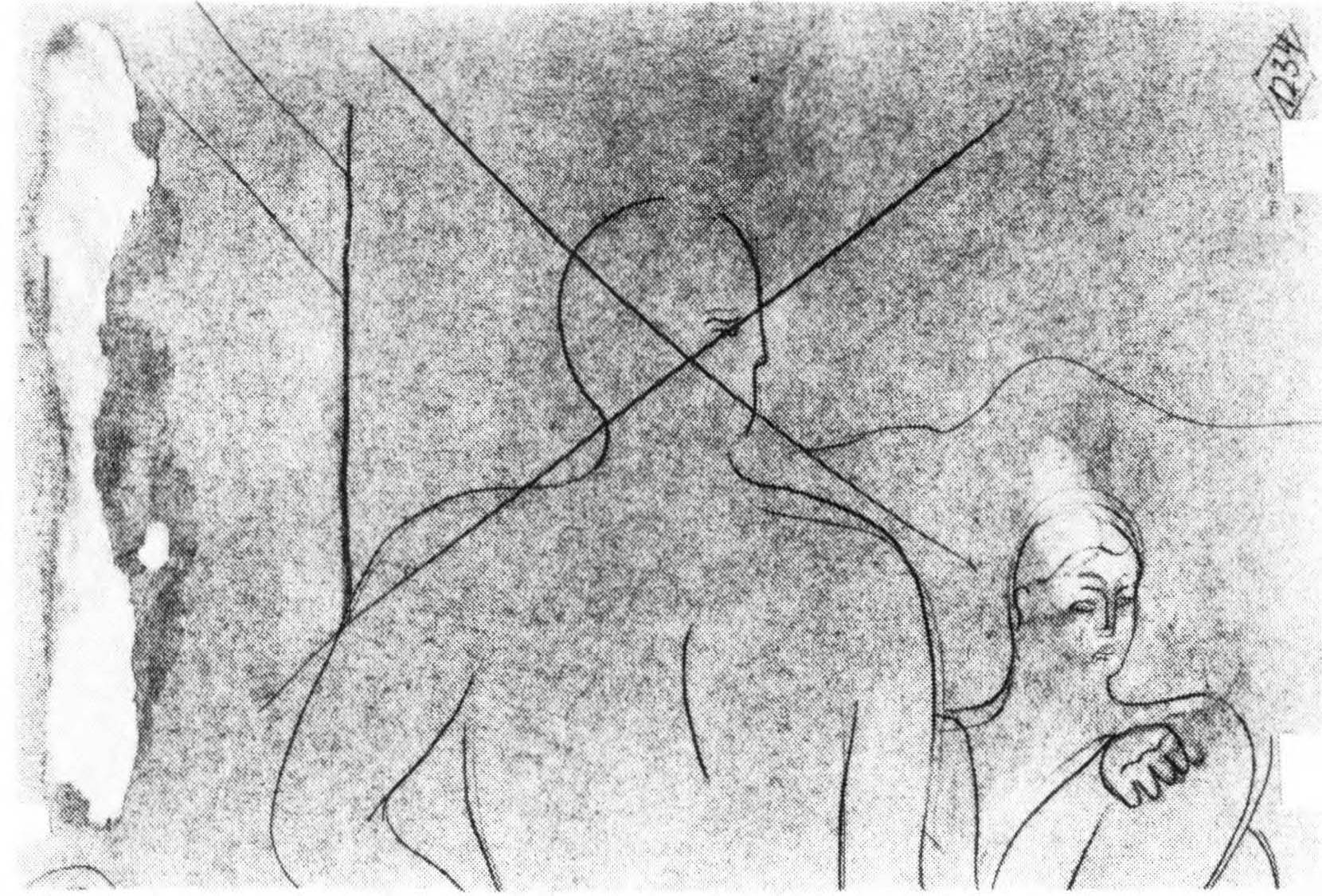 Bleistift, Kohle, gewischt, fixiert, Konturen vorgeritzt, auf chamoisfarbigem Zeichenkarton