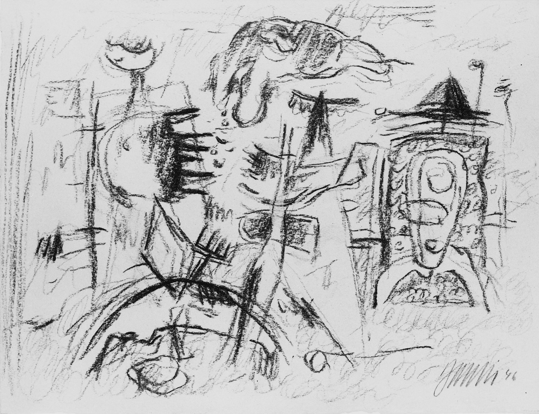 1612 und 1613: Die beiden Blätter fallen durch den bewegten Charakter ihrer Komposition und die Anklänge an Eidos-Motive der 30er Jahre auf. Vgl. das von B. „2 46“ datierte Gemälde G 636. - Vgl. die Lithographie Sp 119 von 1946. (fkb)