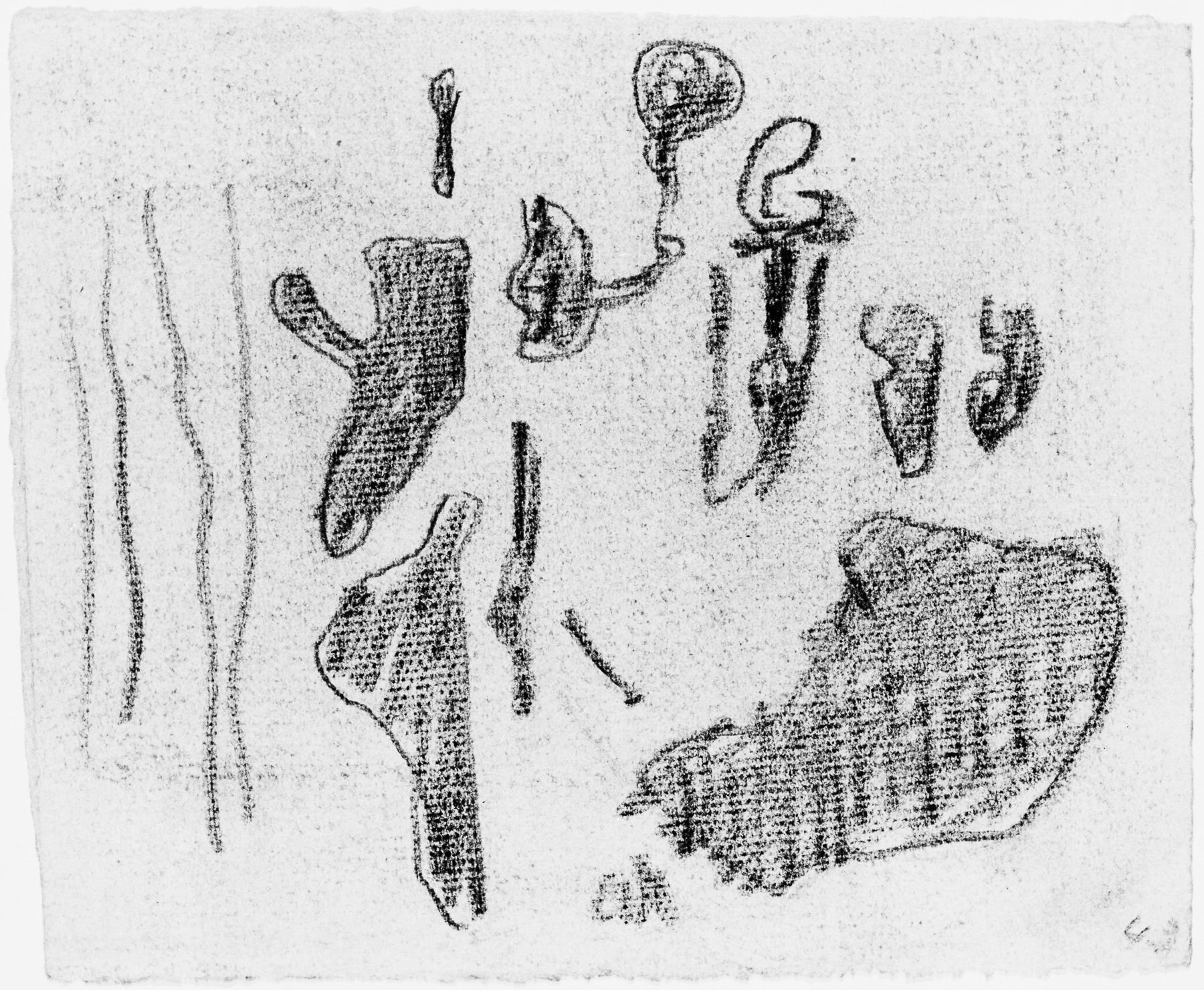 Die rechte Hälfte der Sturm-Variation befindet sich auf Z 969 verso. Vgl. recto mit dem von B. 1943 datierten Gemälde G 1406. - Vgl. die Skizze in Baumeisters Tagebuch, S. 457, am 29. 12. 1943. (fkb)