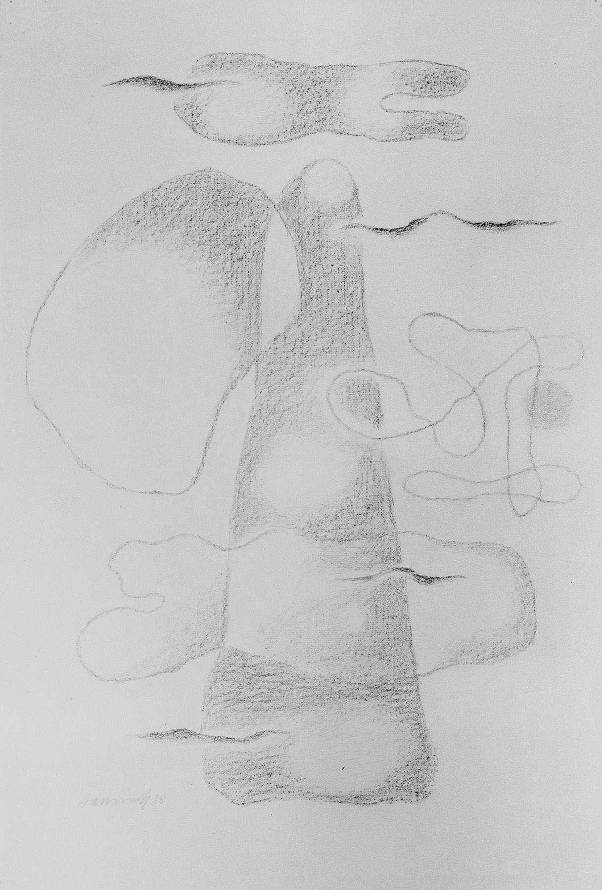 Vgl. das von B. 1938 datierte Gemälde G 525. - Vgl. auch G 524 von 1938. (fkb) Die Unebenheiten des Papiers lassen vermuten, daß es sich um eine direkt von der Maloberfläche im Durchdrückverfahren abgenommene Pause handelt, vgl. Z 700.
