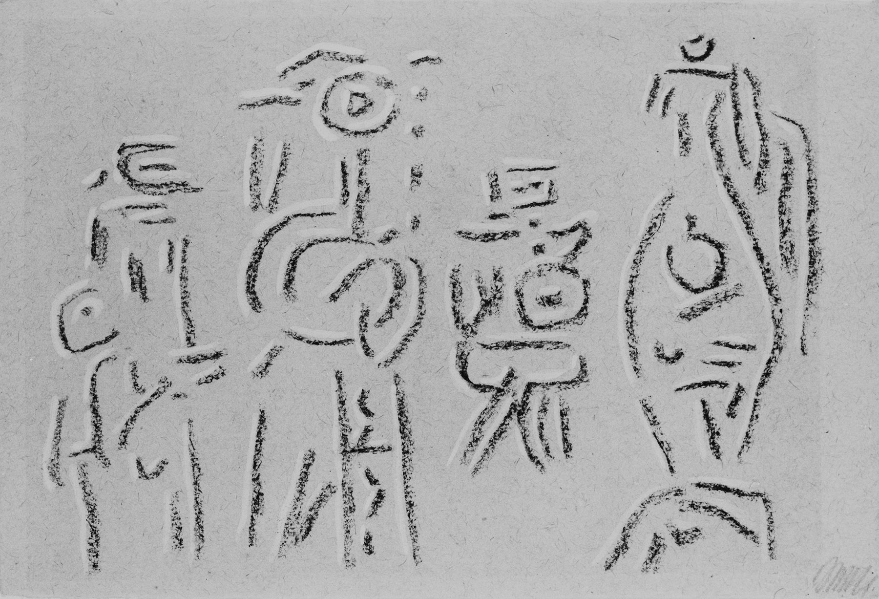 Kohle, Deckweiß, fixiert, auf gelblichem Bütten (Vorsatzpapier)