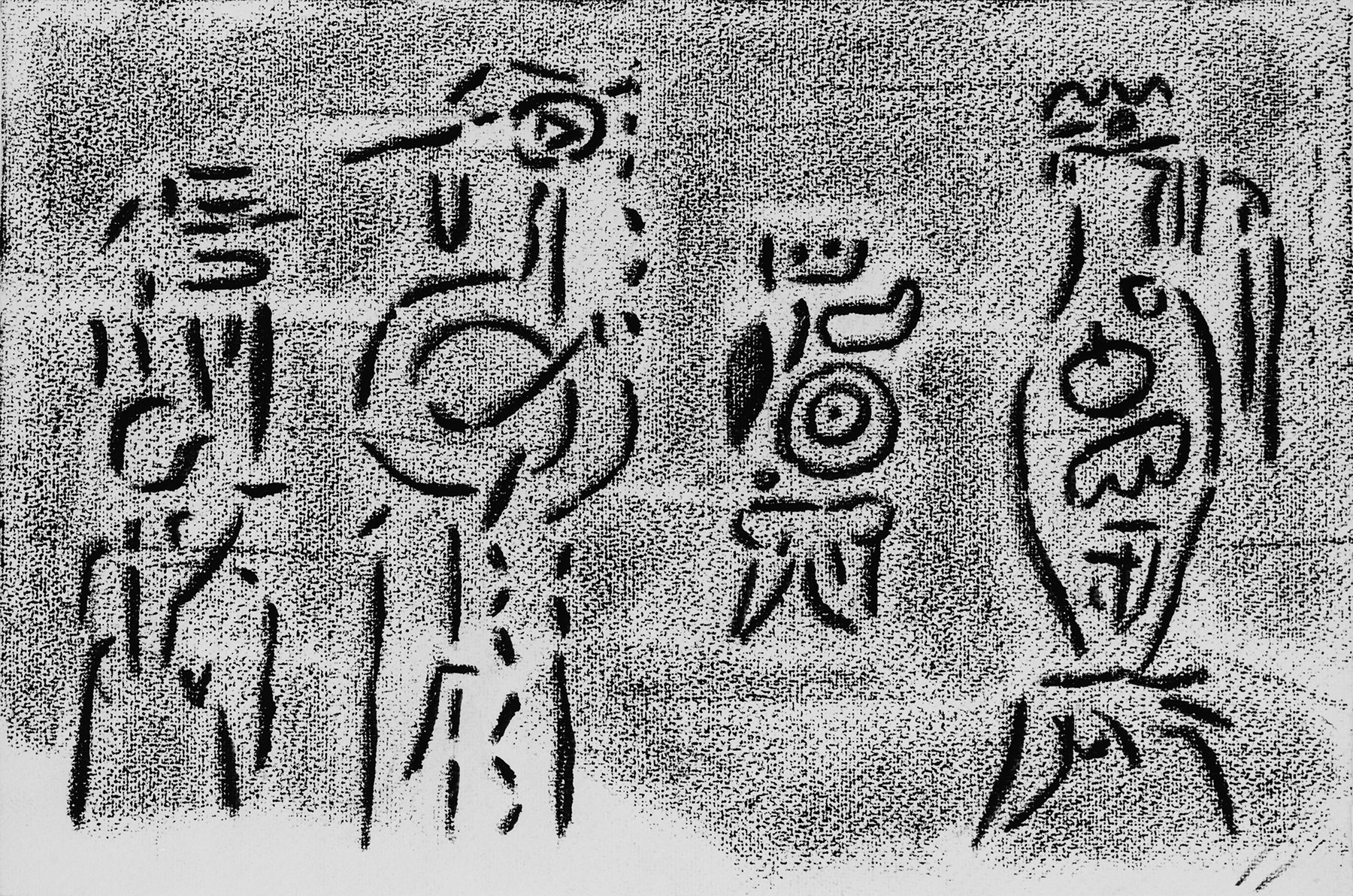 Ölkreide in Schwarz, Deckfarbe in Schwarz, Skizzierung mit Kreide in Rot, auf chamoisfarbigem, mittelstarkem, genarbtem Aquarellpapier