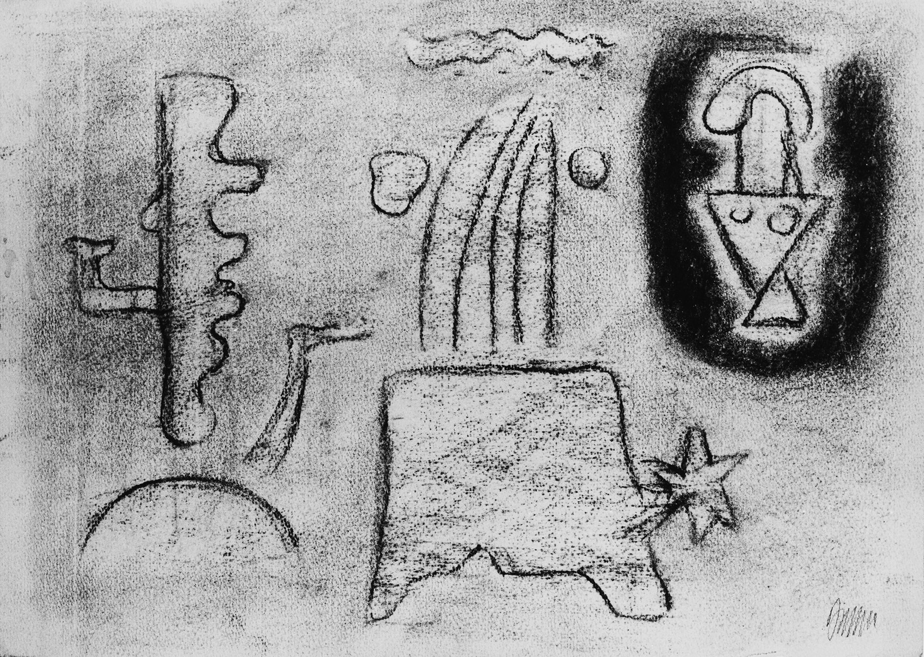 Kohle, gewischt, fixiert, auf chamoisfarbigem, genarbtem, am Rand o. und u. unregelmäßig gerissenem Aquarellkarton