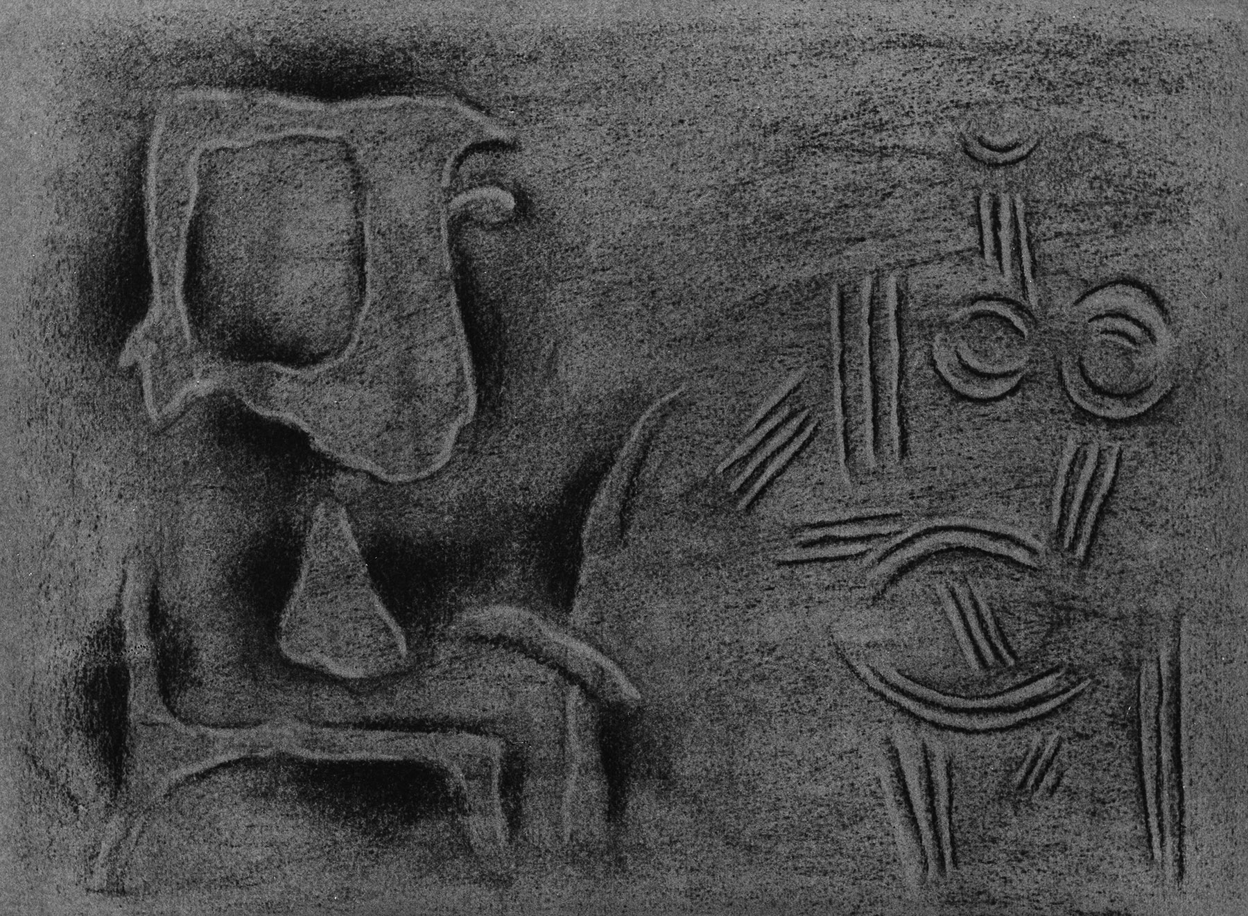 Kohle, gewischt, radiert, fixiert, auf ziegelbraunem, am Rand l. leicht unregelmäßigem Ingres-Bütten
