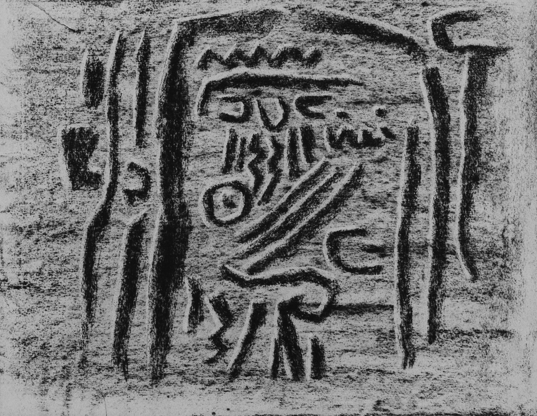 Durch Fixativ leicht gegilbt, an der Ecke l. o. im Rand o. ein ca. 30 mm langer Riß, Rand o. leicht unregelmäßig beschnitten, kleine braune Flecken am Rand u. Mitte.