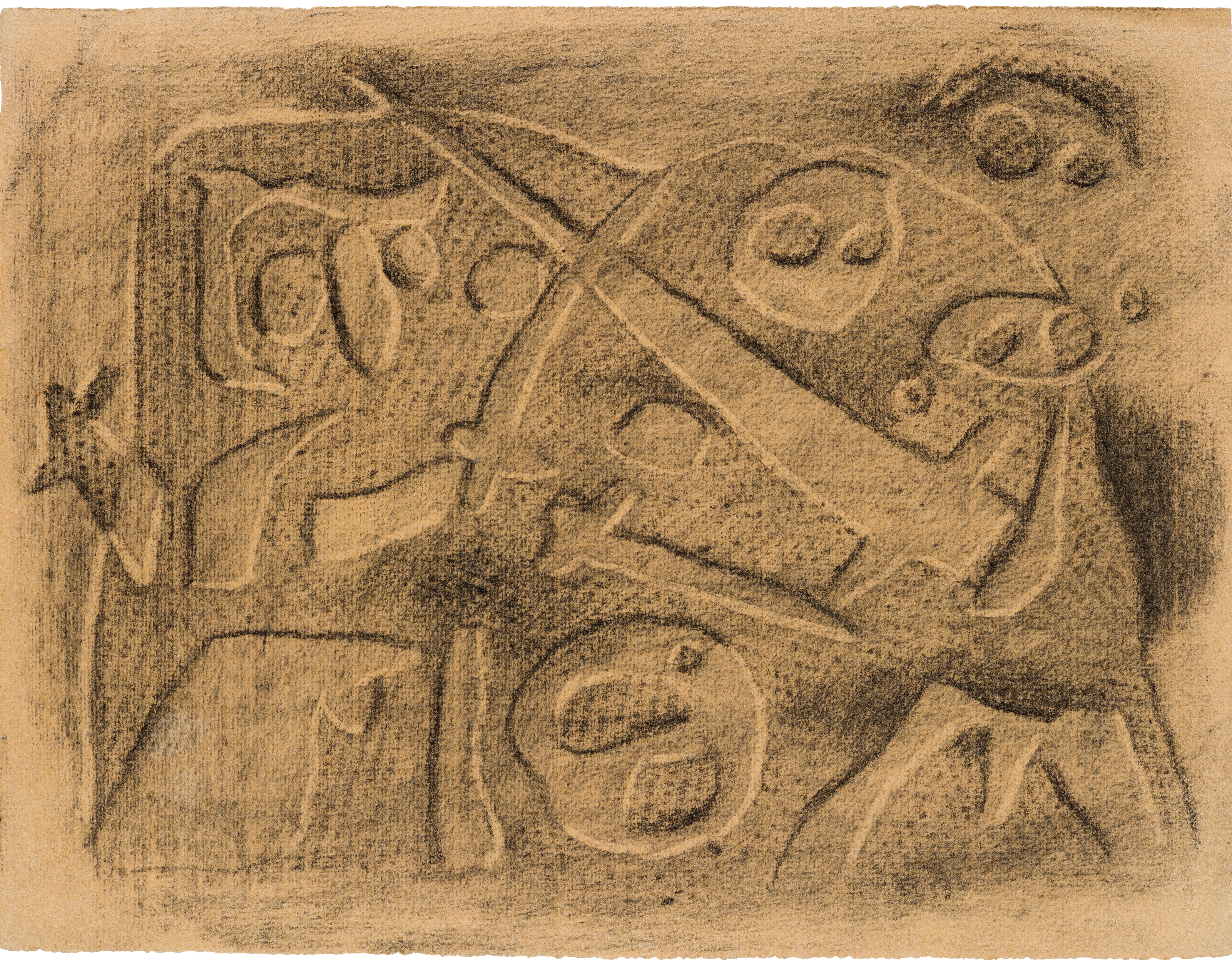 Kohle, gewischt, radiert, fixiert, auf mittelgelbem Ingres-Bütten mit Wz. l. u.: INGRES