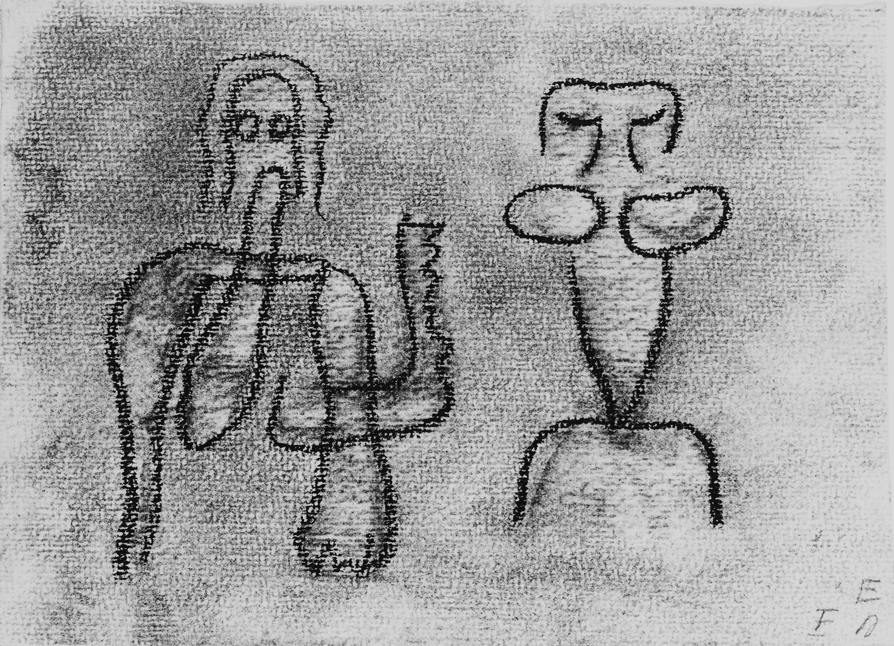 Kohle, gewischt, Ölkreide in Schwarz, fixiert, auf chamoisfarbigem, genarbtem, am Rand o., l. und u. ungleichmäßig gerissenem Aquarellkarton