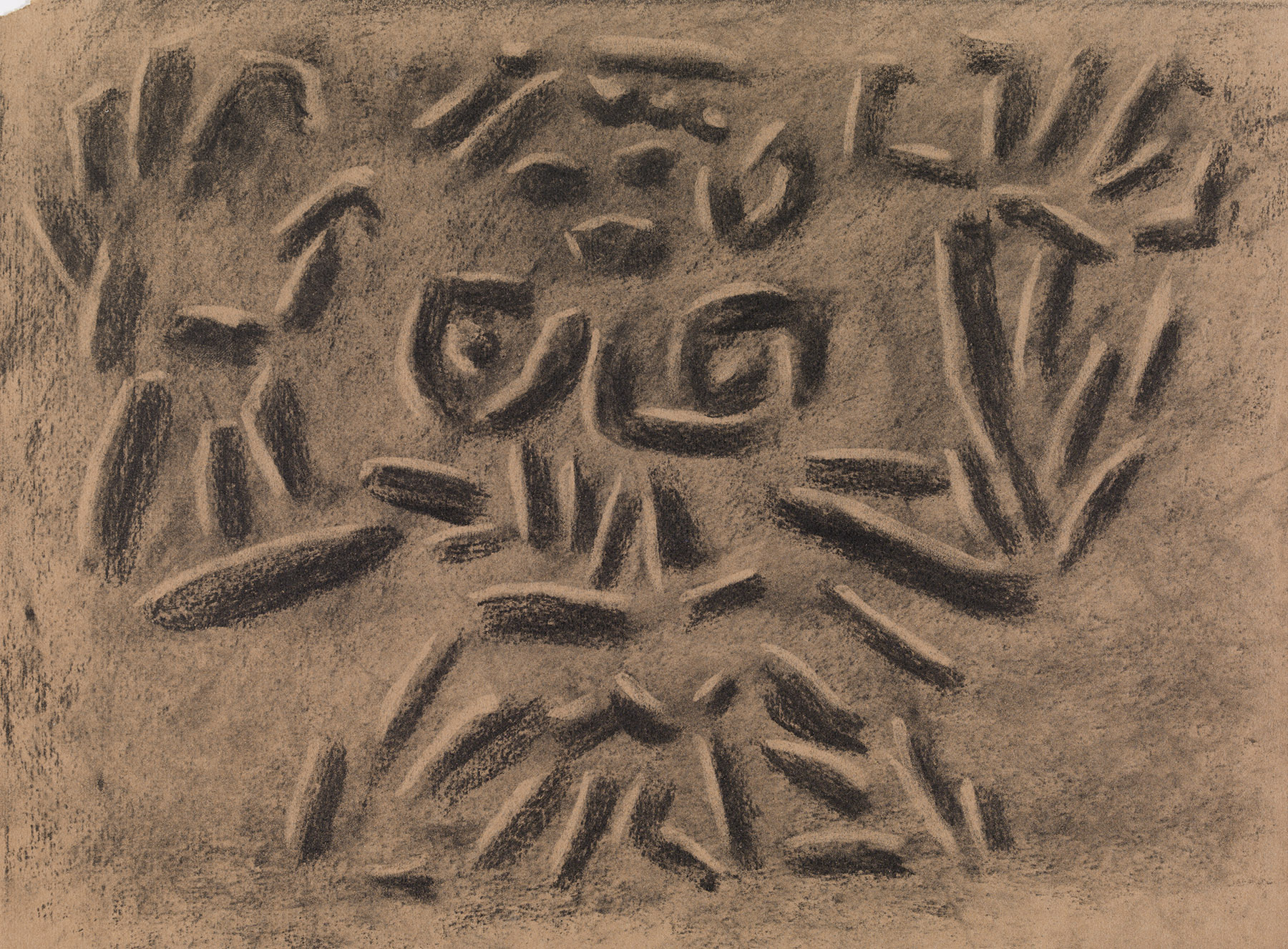 Kohle, gewischt, radiert, fixiert, auf ziegelrotem, am Rand o. im scharfen Knick leicht unregelmäßig gerissenem Ingres-Bütten mit Wz. l. u.: P. M. FABRIANO
