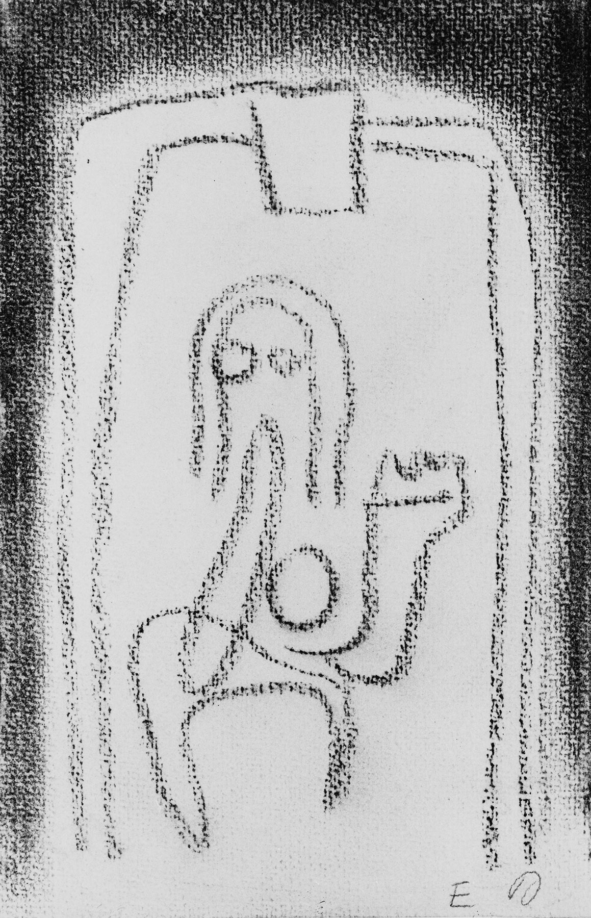 Kohle, z. T. gewischt, fixiert, auf chamoisfarbigem, genarbtem, am Rand r. und u. leicht unregelmäßigem Aquarellkarton