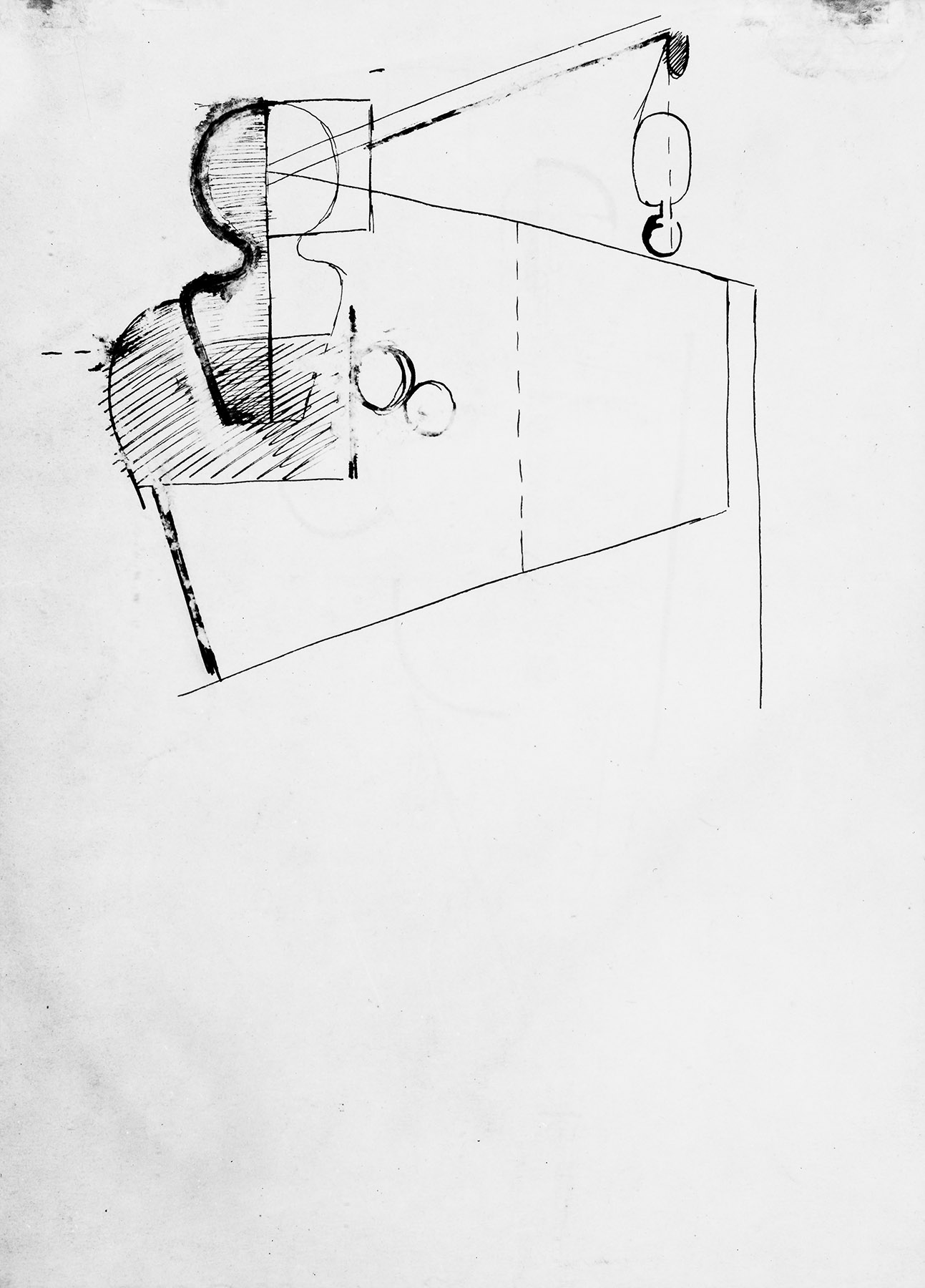 Entwurf zur Lithographie Sp 62. Verso vgl. G 180 von 1920, G 188 und G 189. Dieses zu den frühesten konstruktivistischen Zeichnungen gehörende Blatt zeigt am klarsten die bei Z 41 beschriebene Entwicklung.