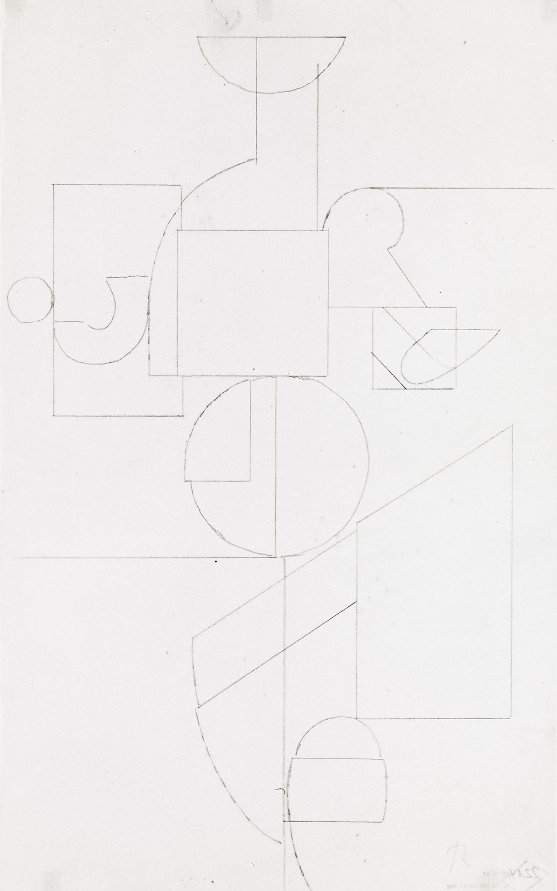Diese Bleistiftzeichnung wiederholt die Komposition von Nr. 43 in Verkleinerung. Es ist nicht eindeutig zu klären, in welchem Zusammenhang diese sicherlich nicht als selbständige Zeichnung zu wertende Arbeit entstand, ob sie in einen der beschriebenen Arbeitsgänge zu stellen ist oder nur als Dokumentation gebraucht werden sollte.