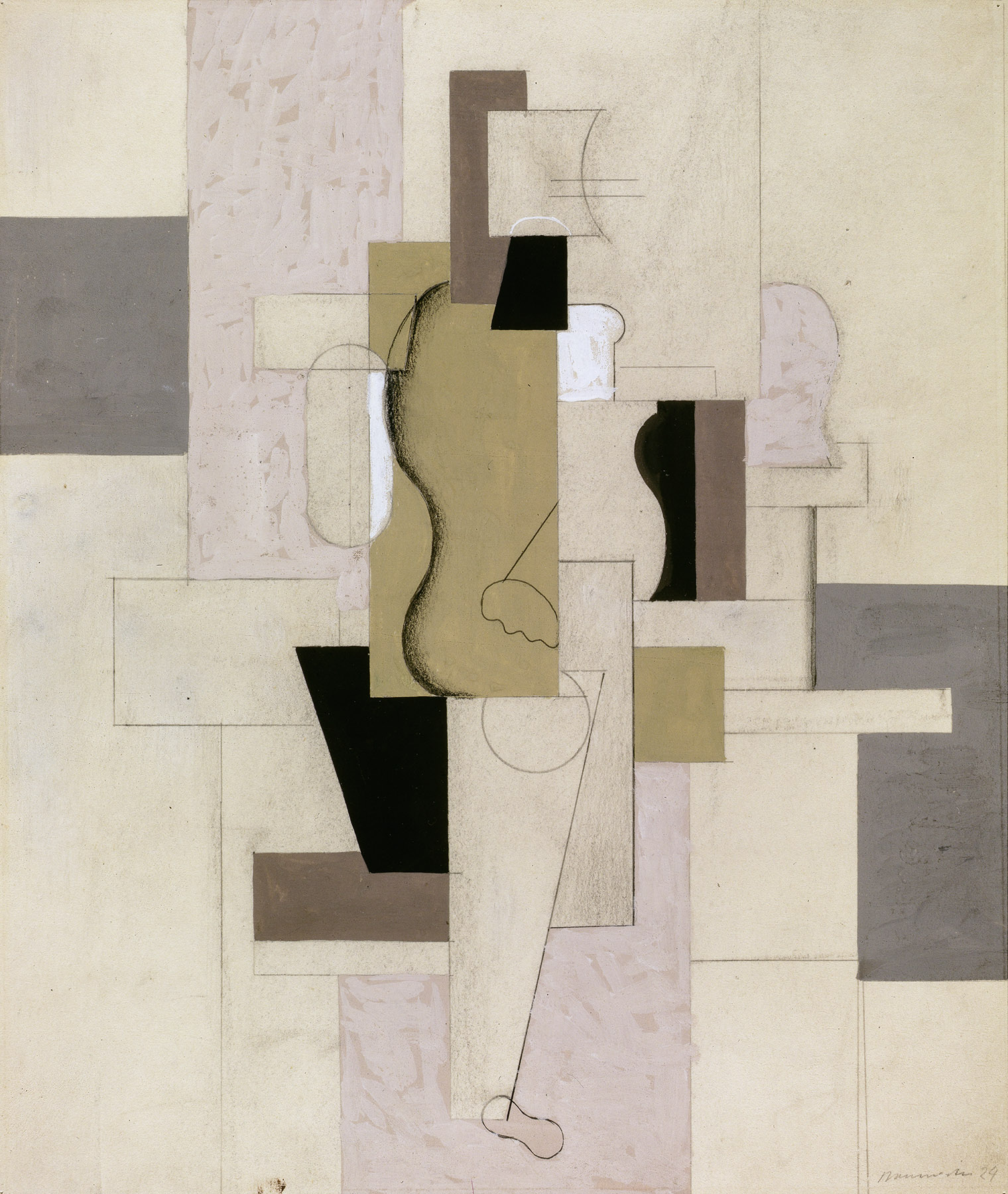 Die Verbindung der Figurenkomposition mit geometrischen Flächenelementen weist zurück auf die Gruppe der wandbildhaften Kompositionen der Jahre 1920-23, siehe Z 50-138. (fkb)