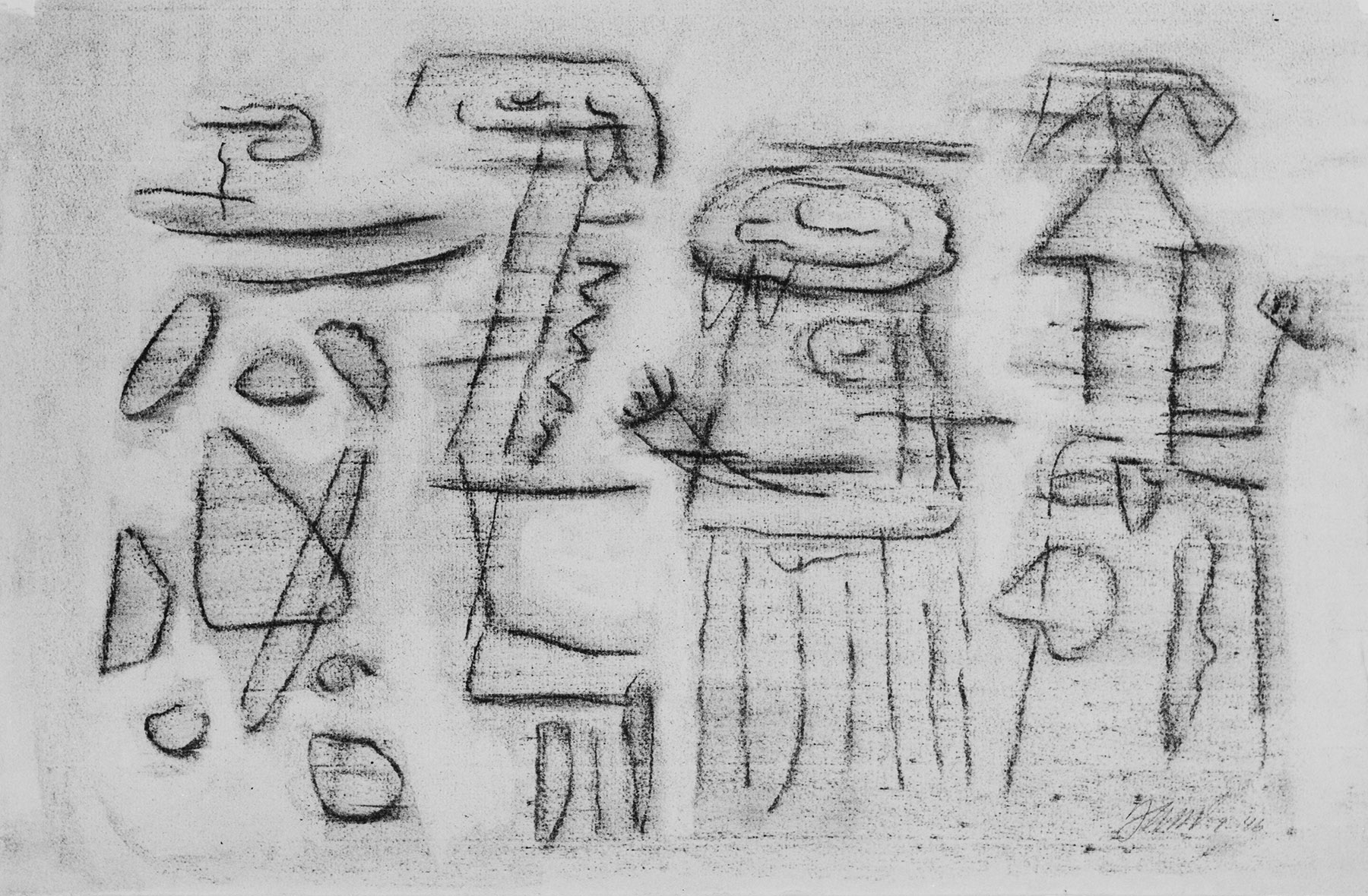 Kohle, gewischt, radiert, fixiert, auf chamoisfarbigem Ingres-Bütten