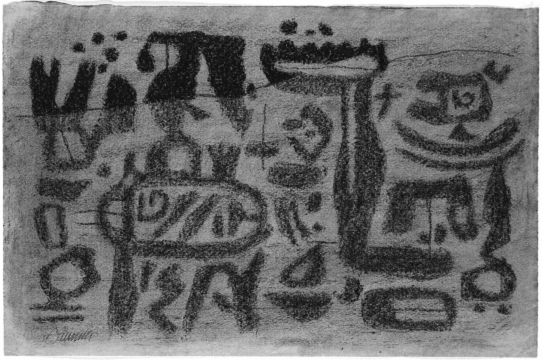 Kohle, gewischt, Ölkreide in Schwarz, fixiert, auf beigefarbigem Ingres-Bütten mit Wz. l. u.: INGRES