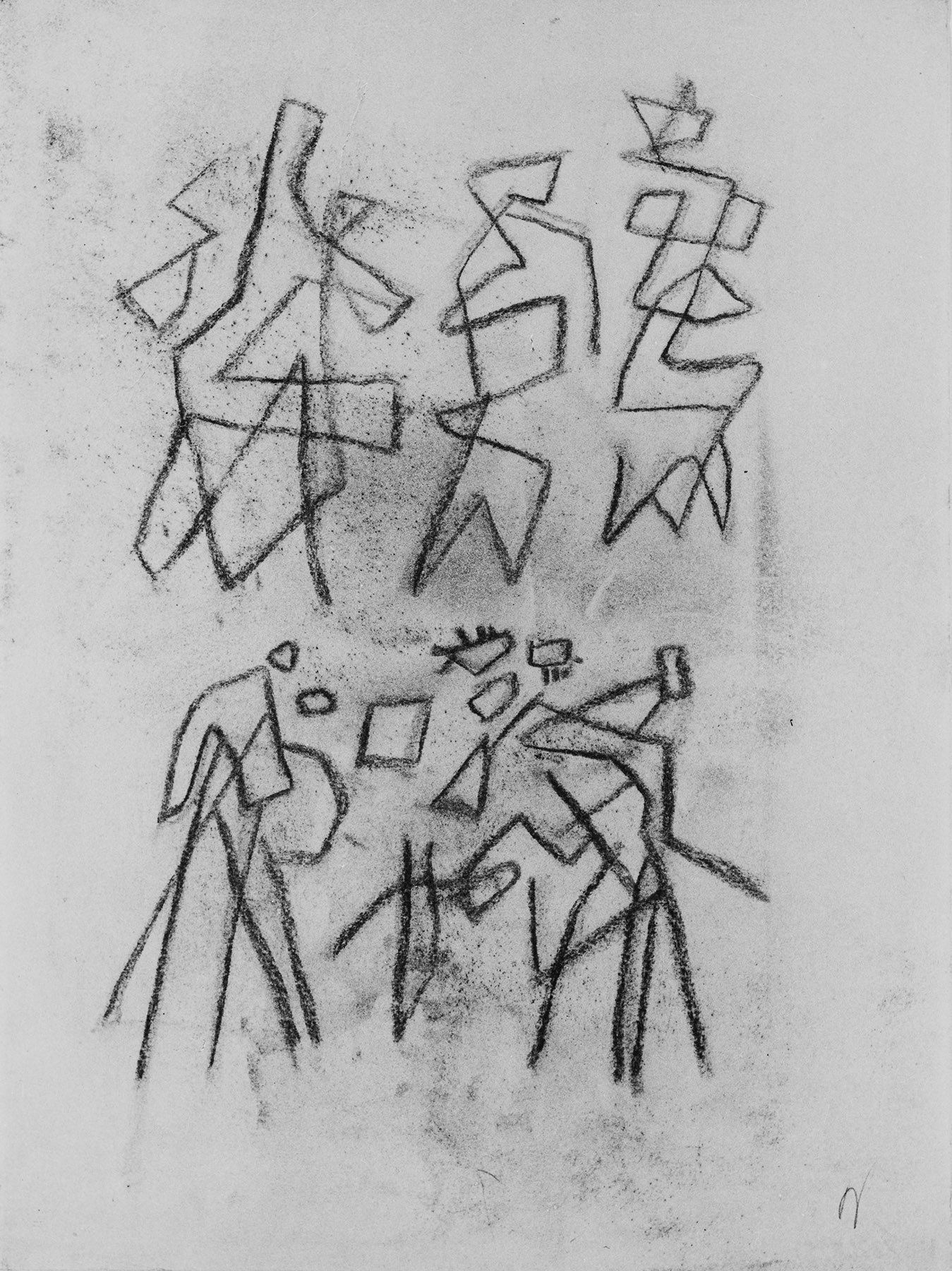 Kohle, gewischt, fixiert, auf chamoisfarbigem, am Rand l. perforiertem Zeichenpapier