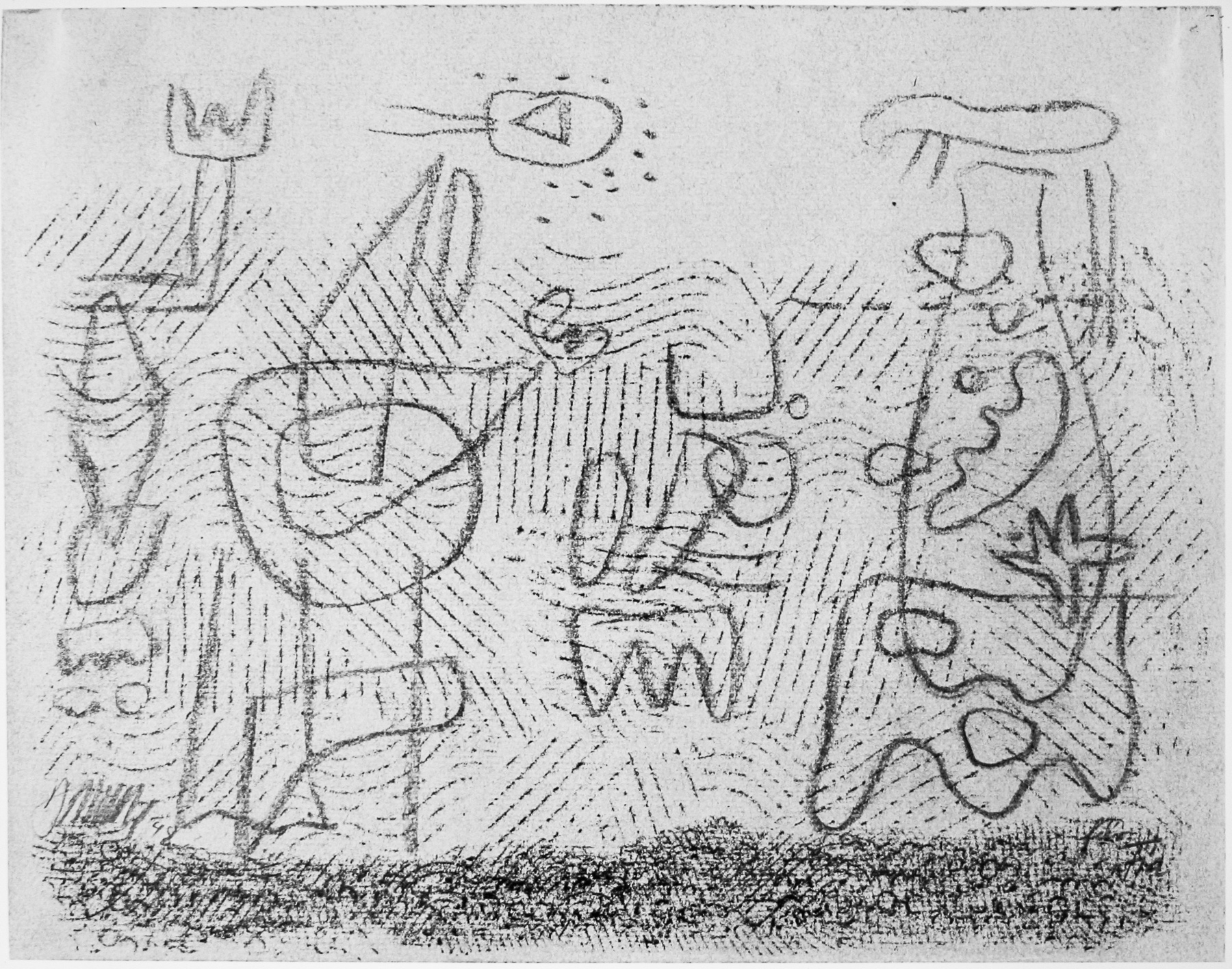 Kohle, Ölkreide in Schwarz, durchgerieben, fixiert, auf rosafarbigem Ingres-Bütten