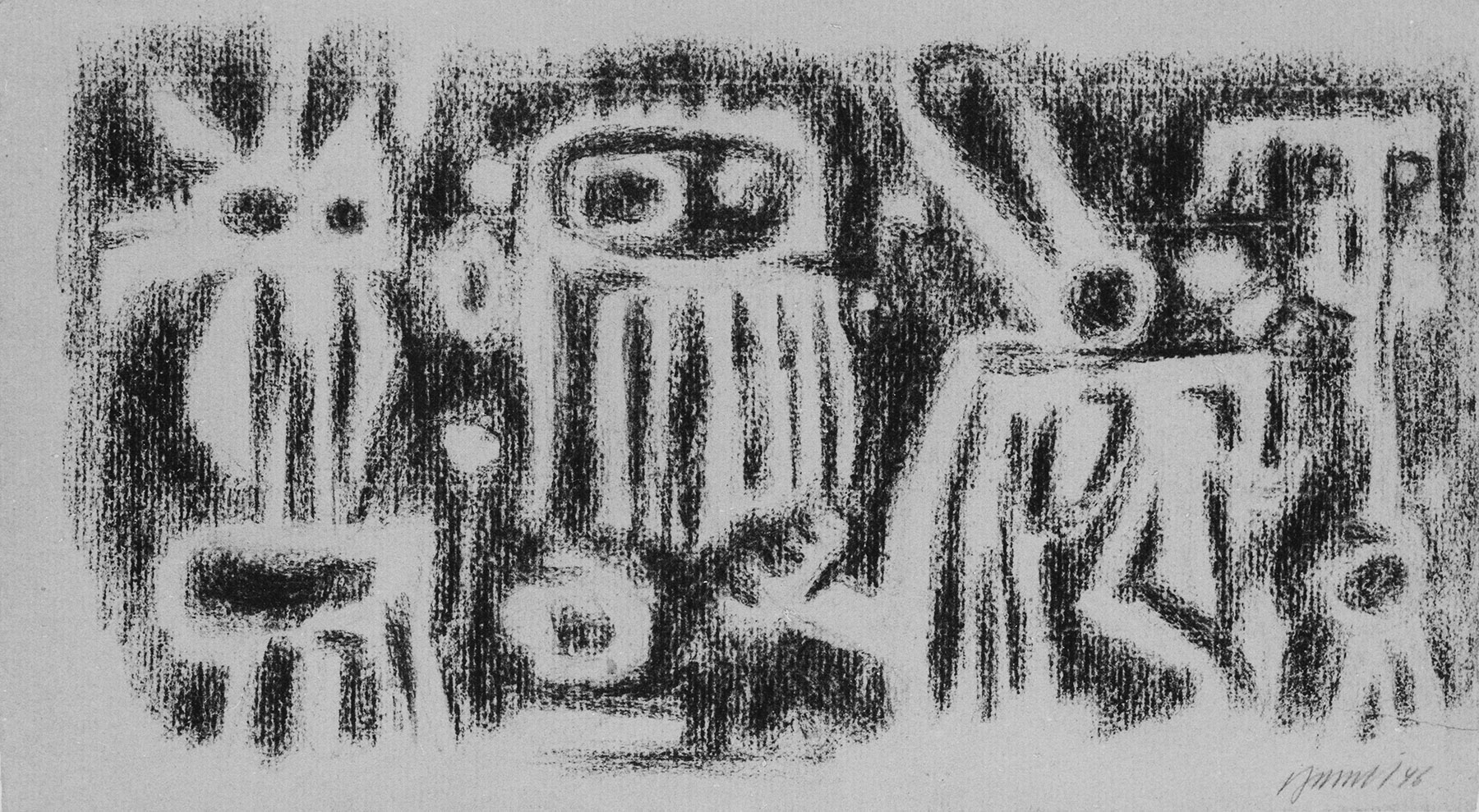 Kohle, fixiert, auf lindgrünem Ingres-Bütten