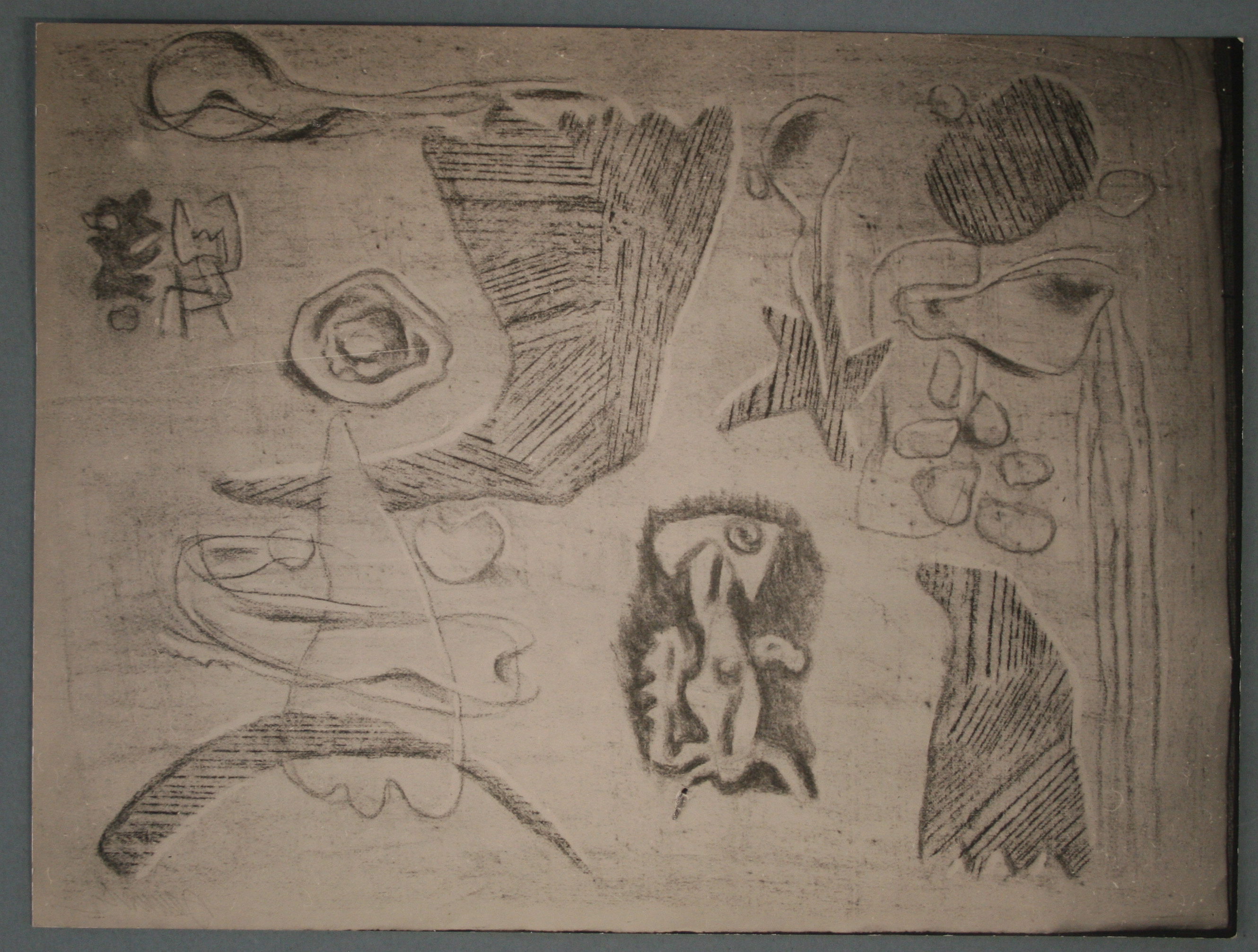 Kohle, gewischt, radiert, Ölkreide in Schwarz, durchgerieben, fixiert, auf chamoisfarbigem Ingres-Bütten