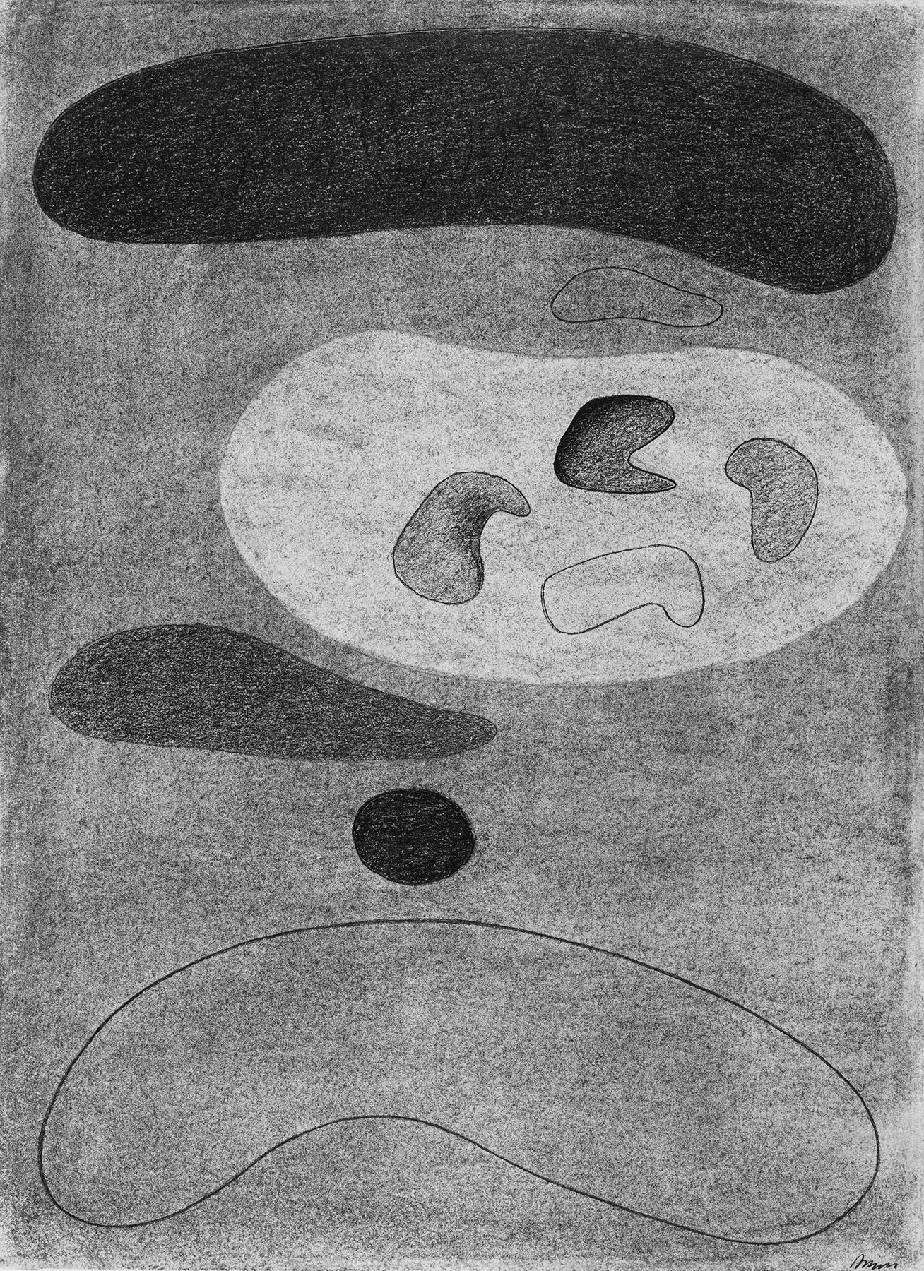 Kohle, gewischt, Bleistift, Ritzkonturen, fixiert, auf chamoisfarbigem, am Rand l. perforiertem Zeichenkarton
