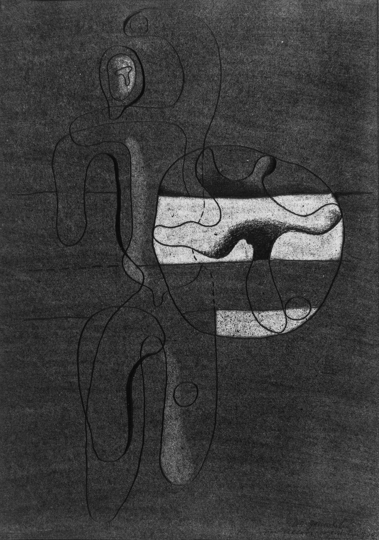 Bleistift, Kohle, gewischt, Ritzkonturen, fixiert, auf chamoisfarbigem Zeichenkarton